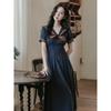 Haohai Short-sleeved Raspberry Black Tea Paid Skirt Bow-tie