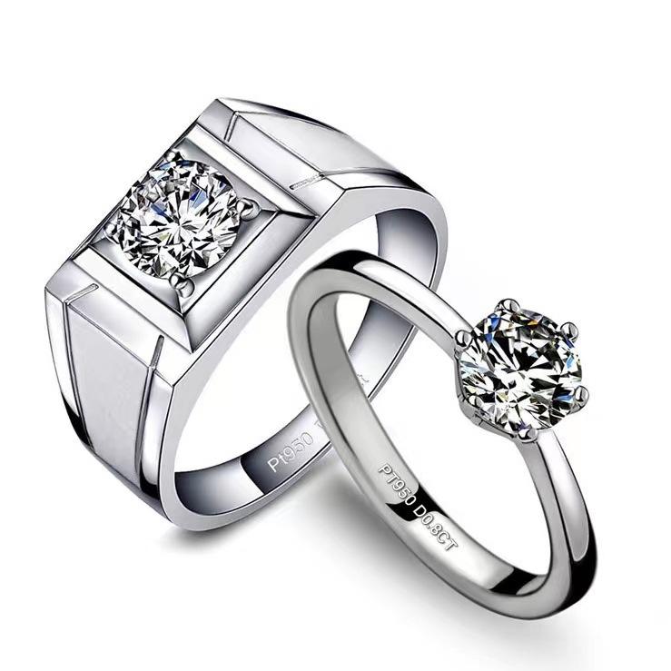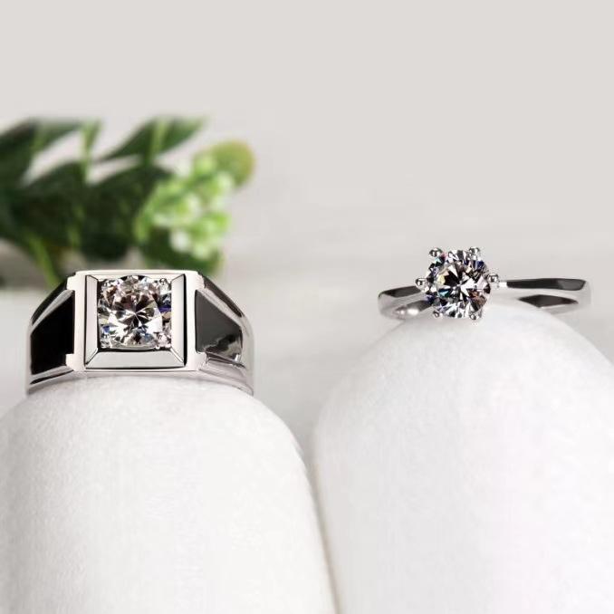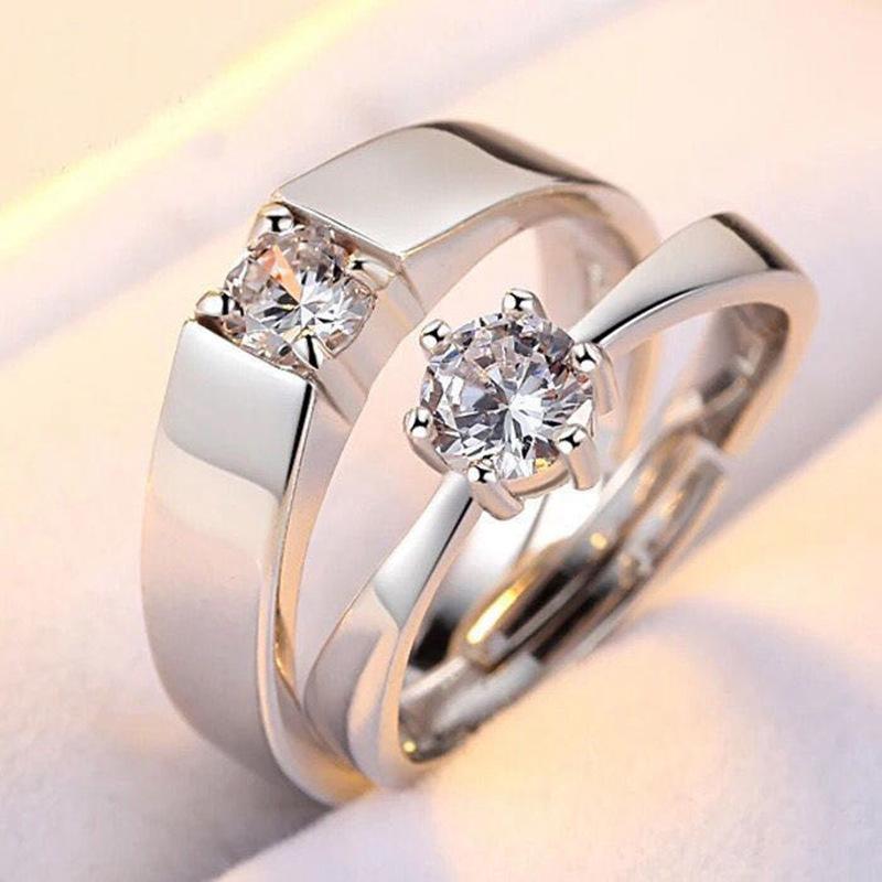 Anillo de pareja chapado en plata con accesorios transfronterizos, anillo de diamantes europeo y americano con simulación de circonita, anillo de propuesta de compromiso Qixi