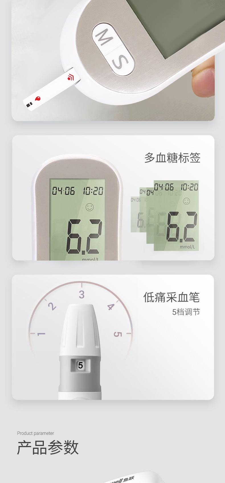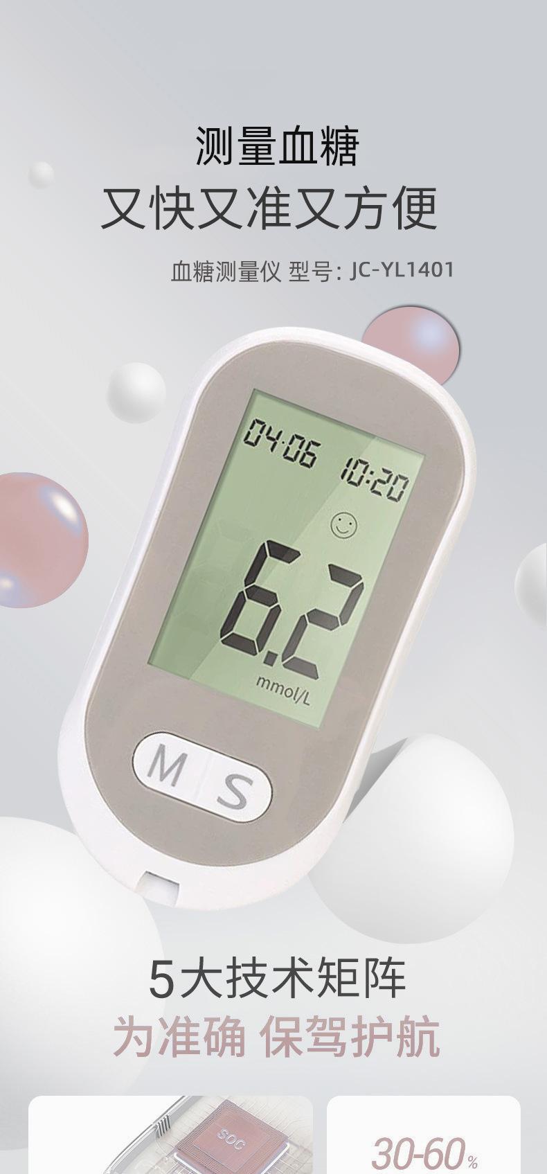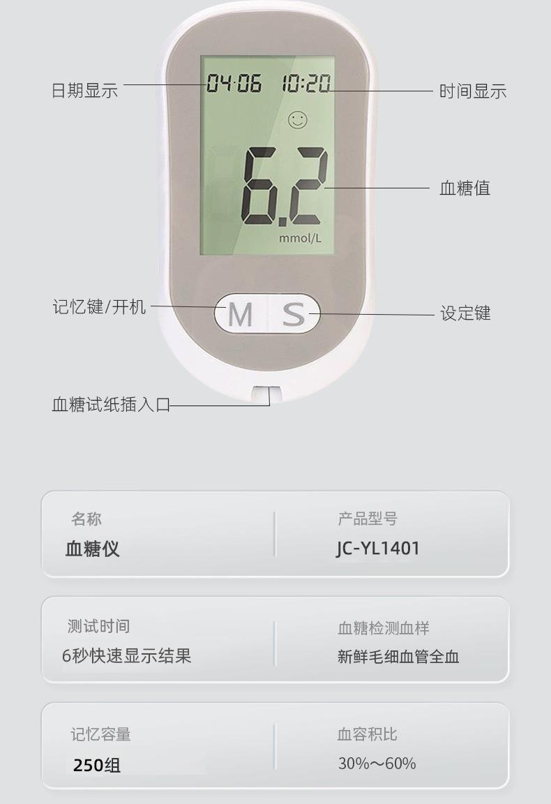 Medidor de Glucosa en Sangre Jc-Yl1401 Inglés para Personas de Mediana Edad y Mayores, Analizador de Sangre, Medidor de Azúcar en Sangre, Uso Doméstico, Portátil