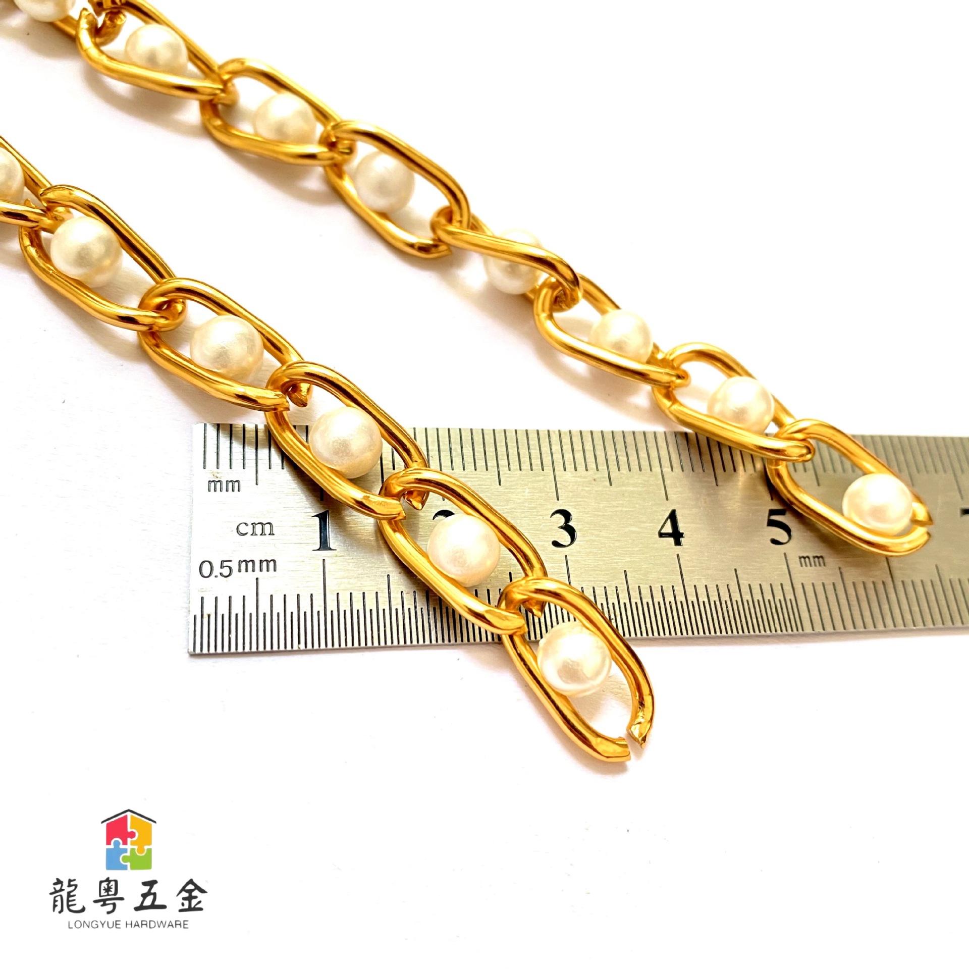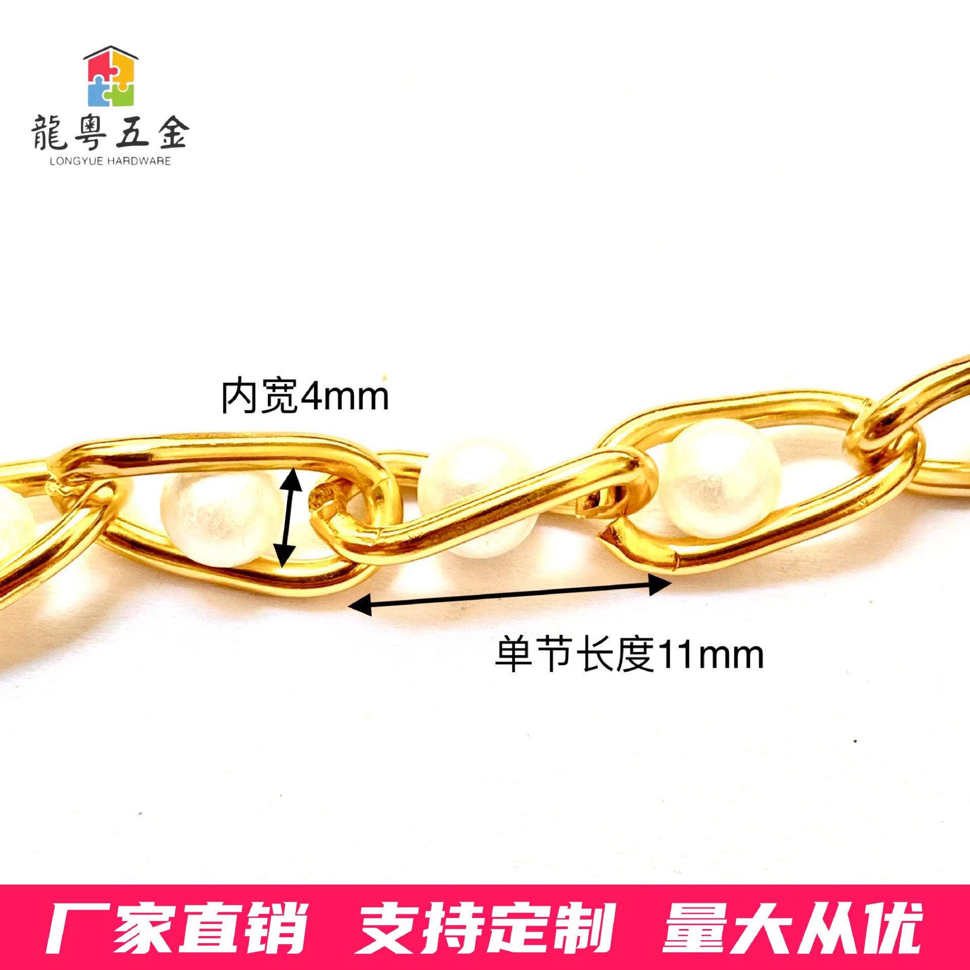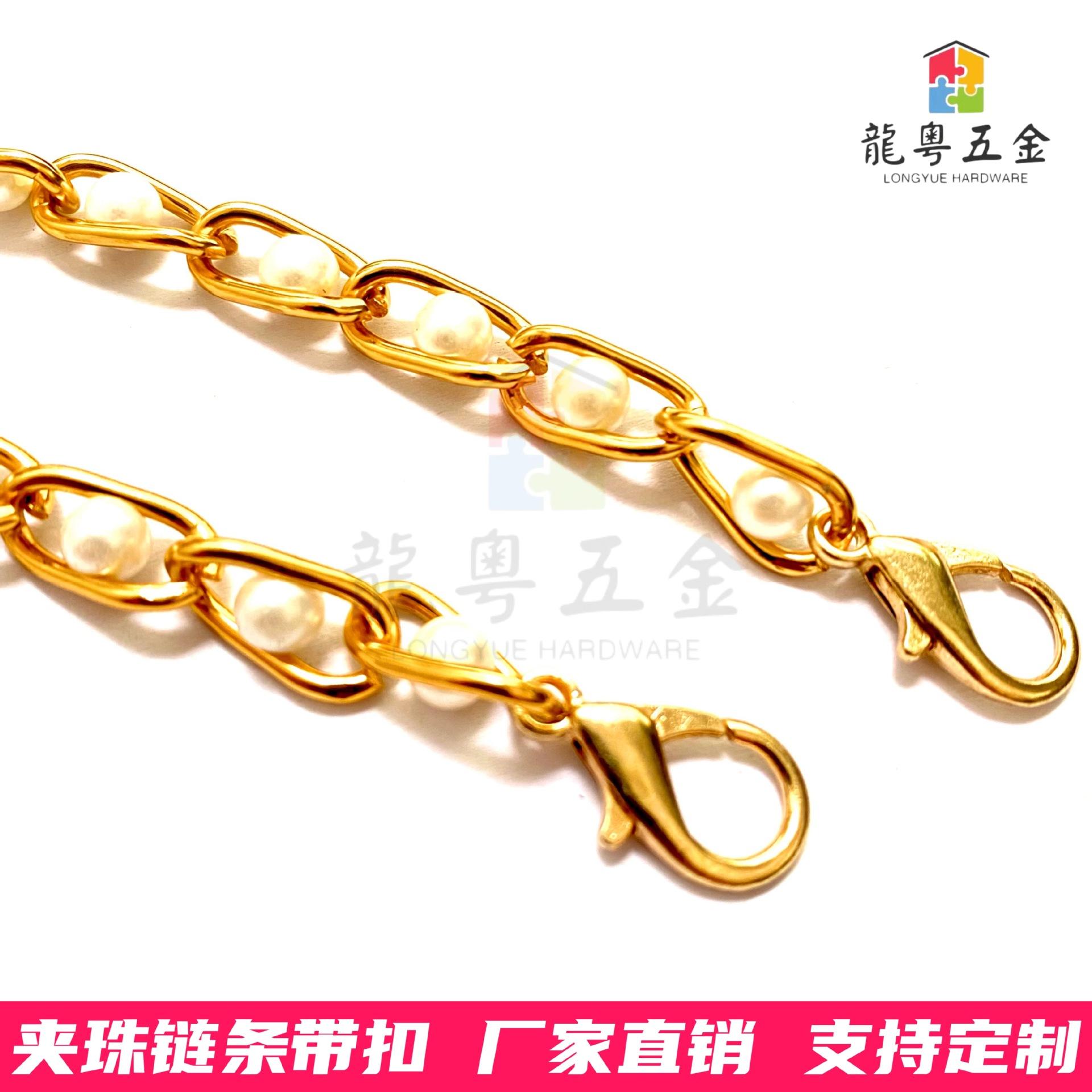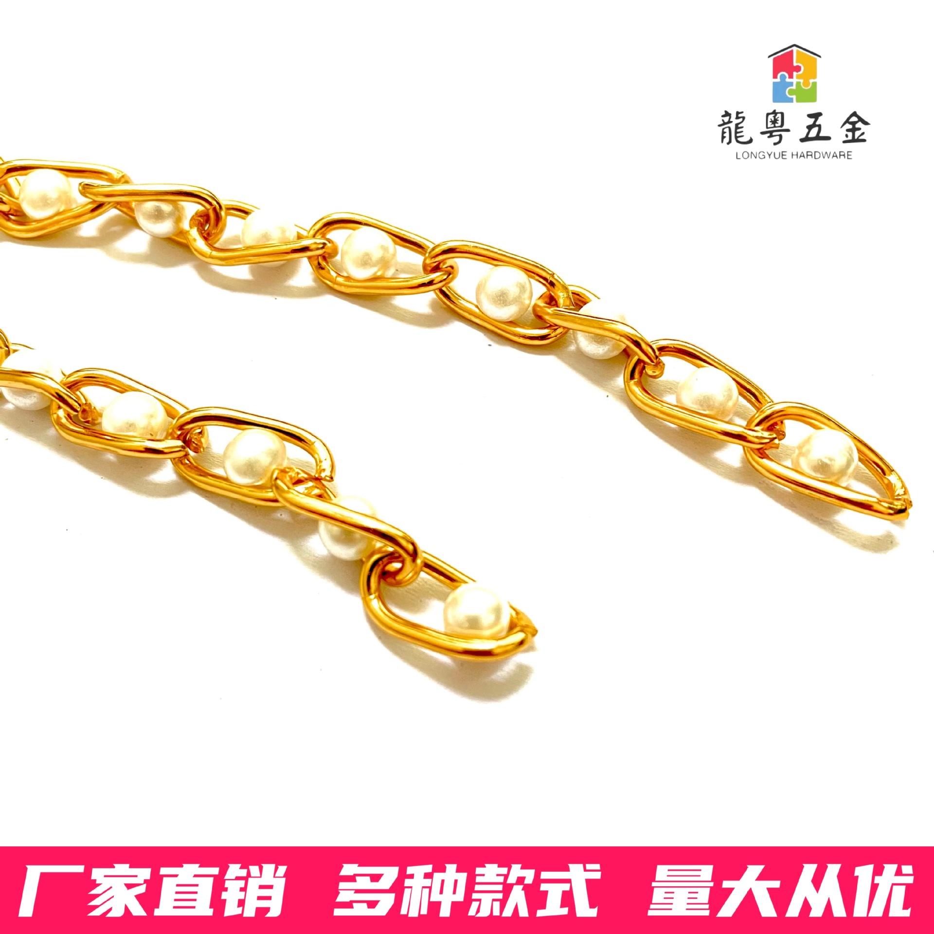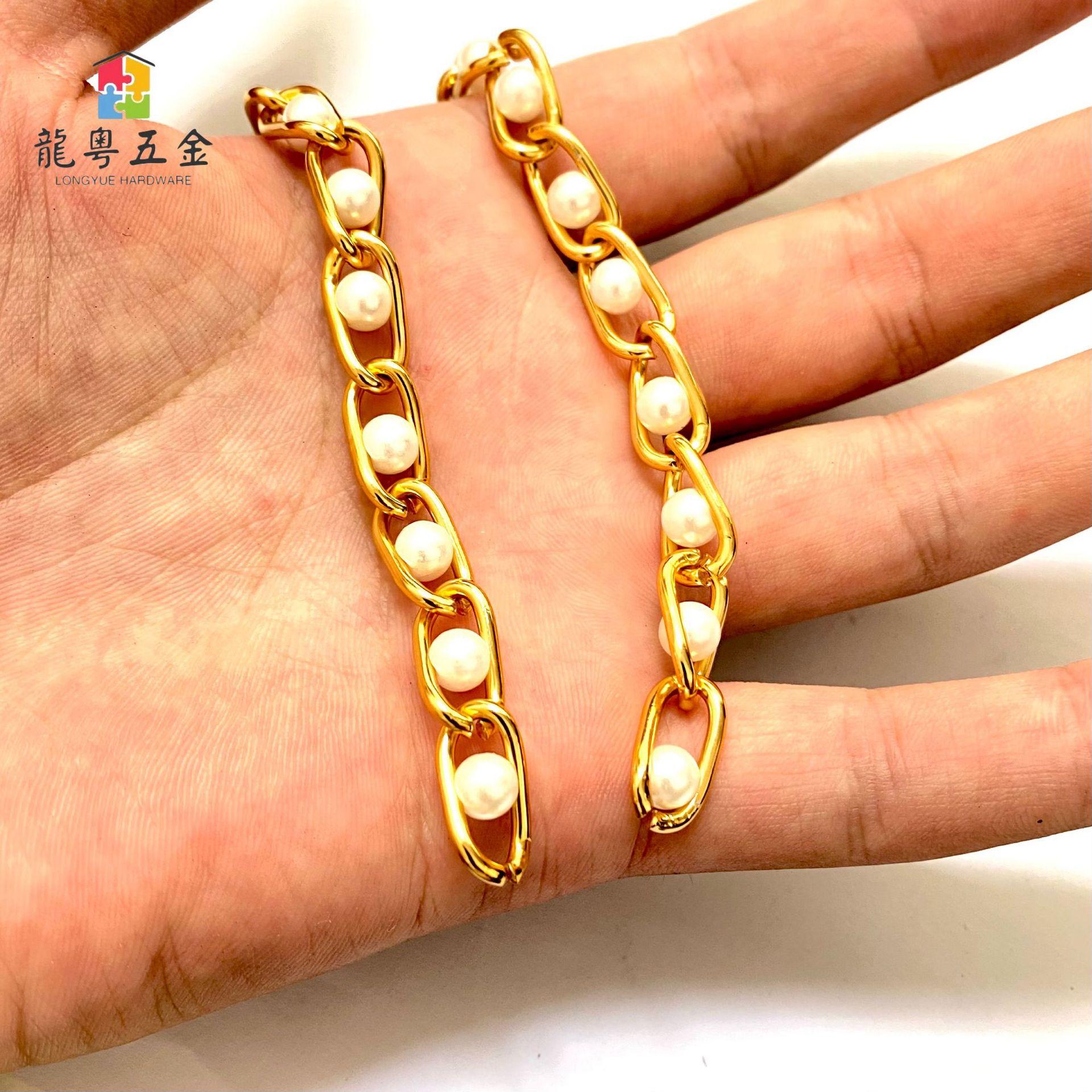 Bolso de metal con cadena de perlas, cadena decorativa, venta al por mayor, bolsos de ropa, cadena de hardware, hebilla.