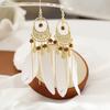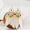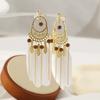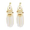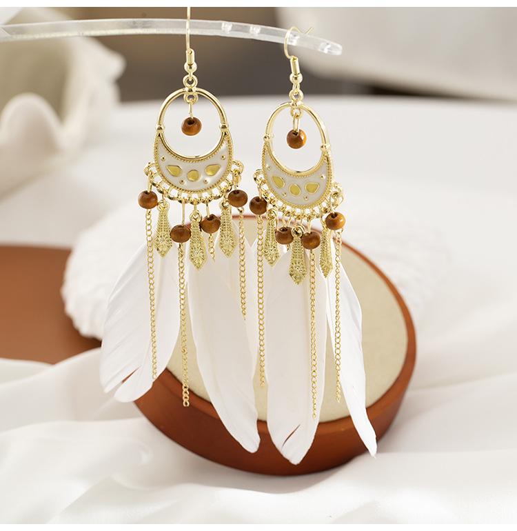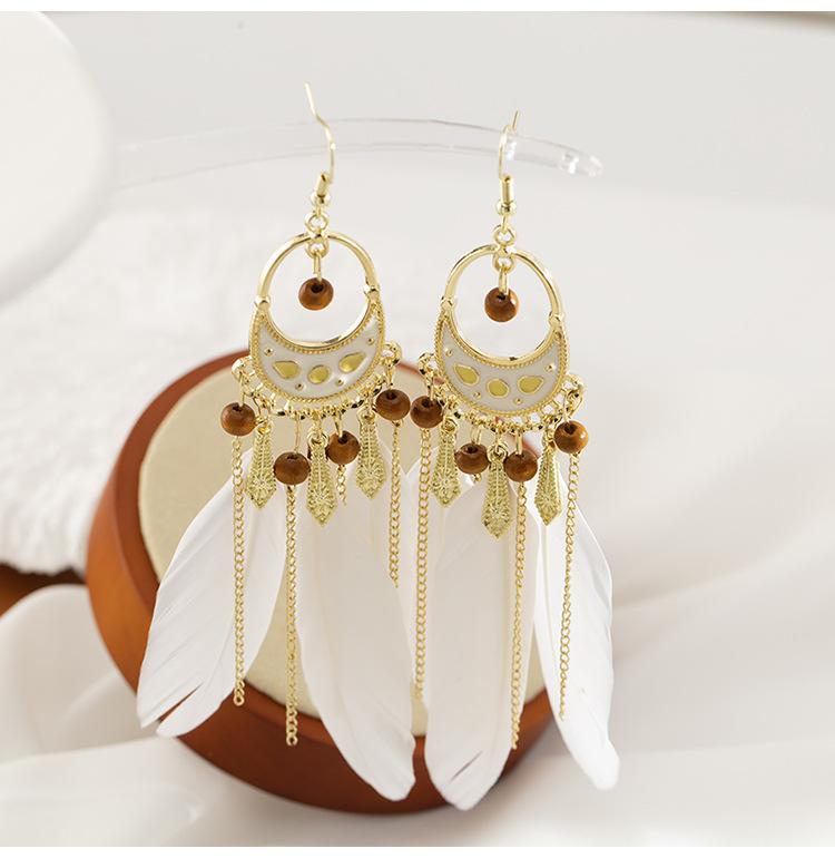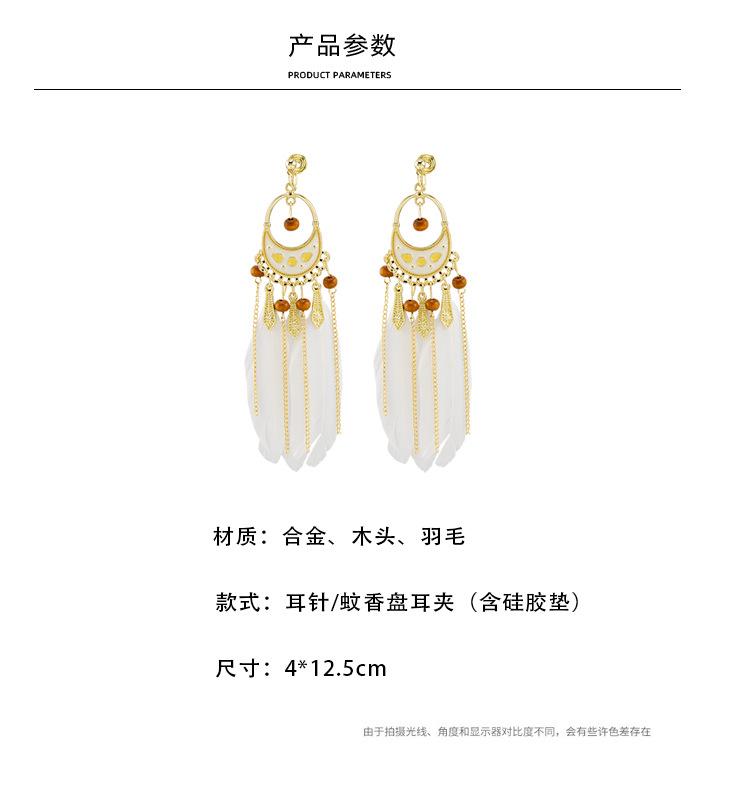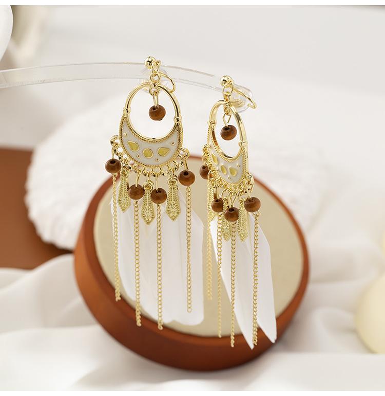 Pendientes de plumas blancas estilo étnico bohemio con diseño de hada retro, borla larga, espiral antimosquitos, clip para la oreja sin perforaciones para mujer
