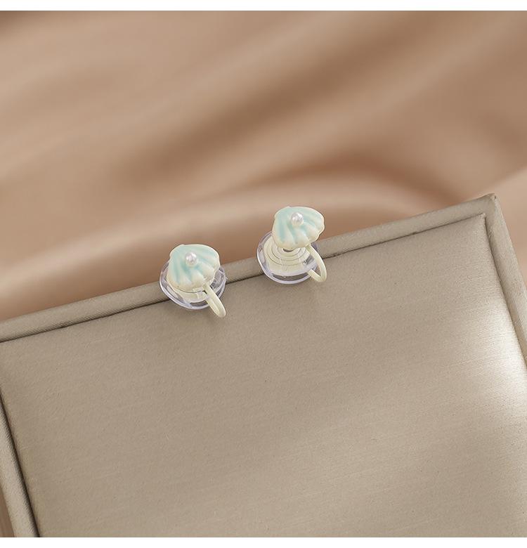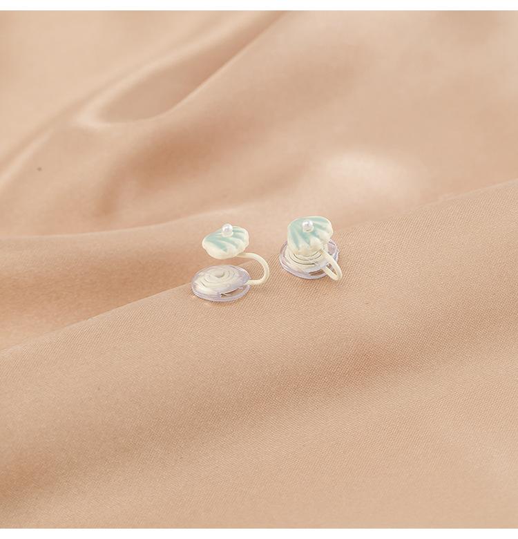 Pendientes pequeños con forma de concha, bonitos y bonitos, con diseño de nicho, para uso diario, con clip para la oreja en espiral antimosquitos, sin perforaciones, para mujer