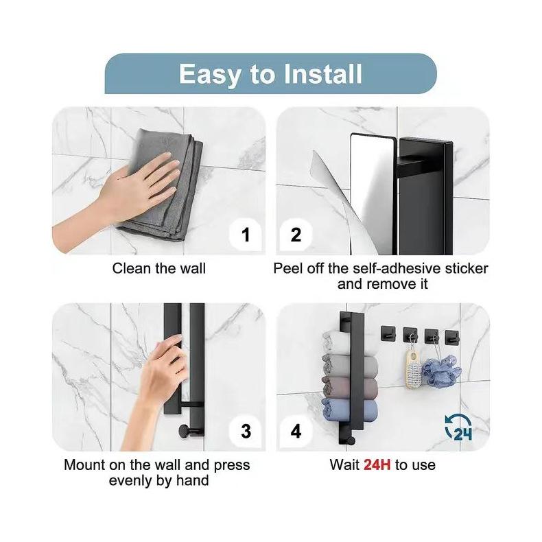 Toallero de acero inoxidable transfronterizo, autoadhesivo, para almacenamiento sin baño, toallero sin perforaciones, toallero para baño