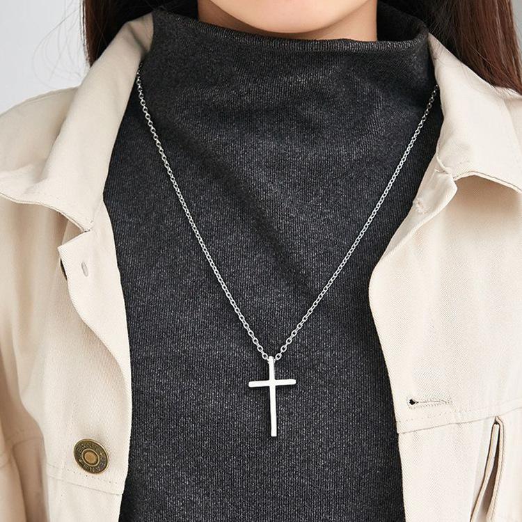 Collar con cruz de acero de titanio que no se decolora, para hombres y mujeres, pareja en línea, celebridad, colgante simple, cadena de suéter, accesorios de acero inoxidable de hip hop
