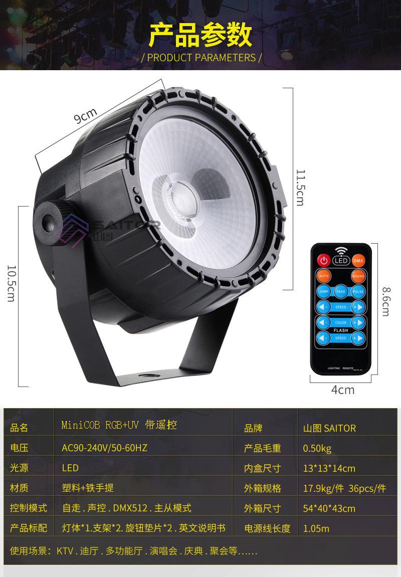 Mini LED 15W control remoto COB luz de superficie RGB + UV barra de luz pequeña PA luz de escenario KTV decoración