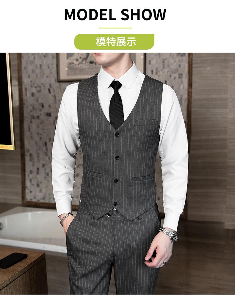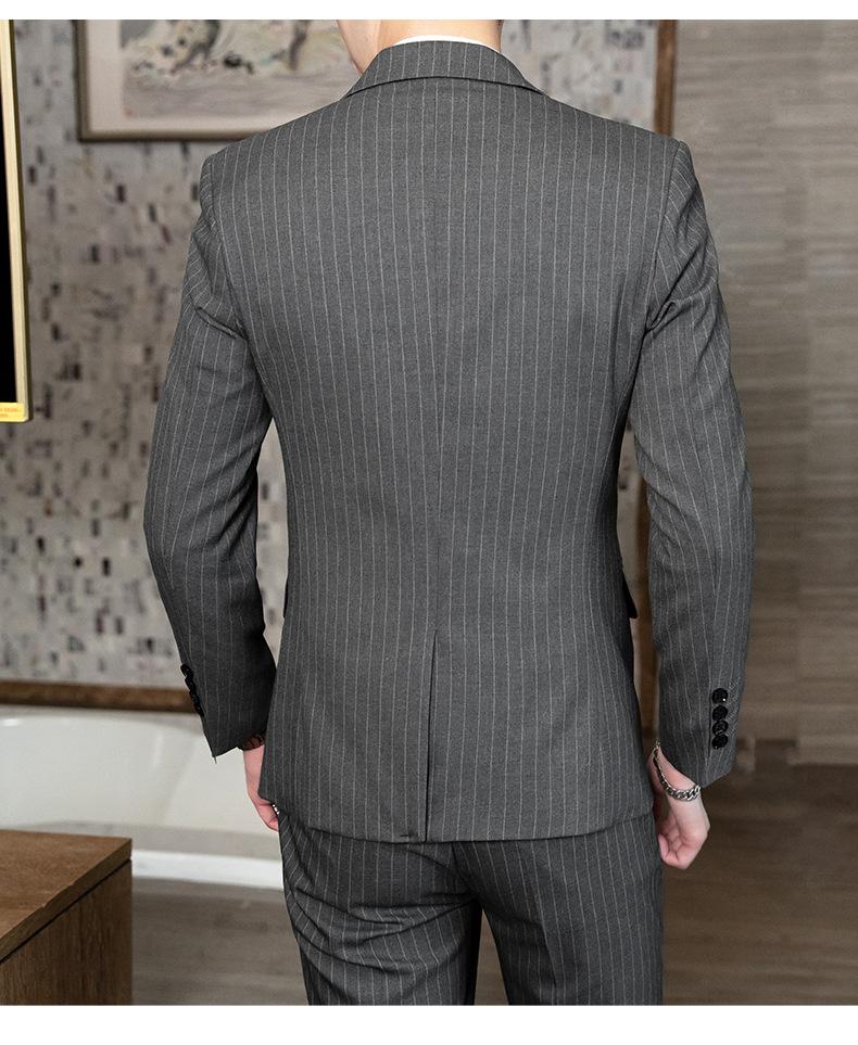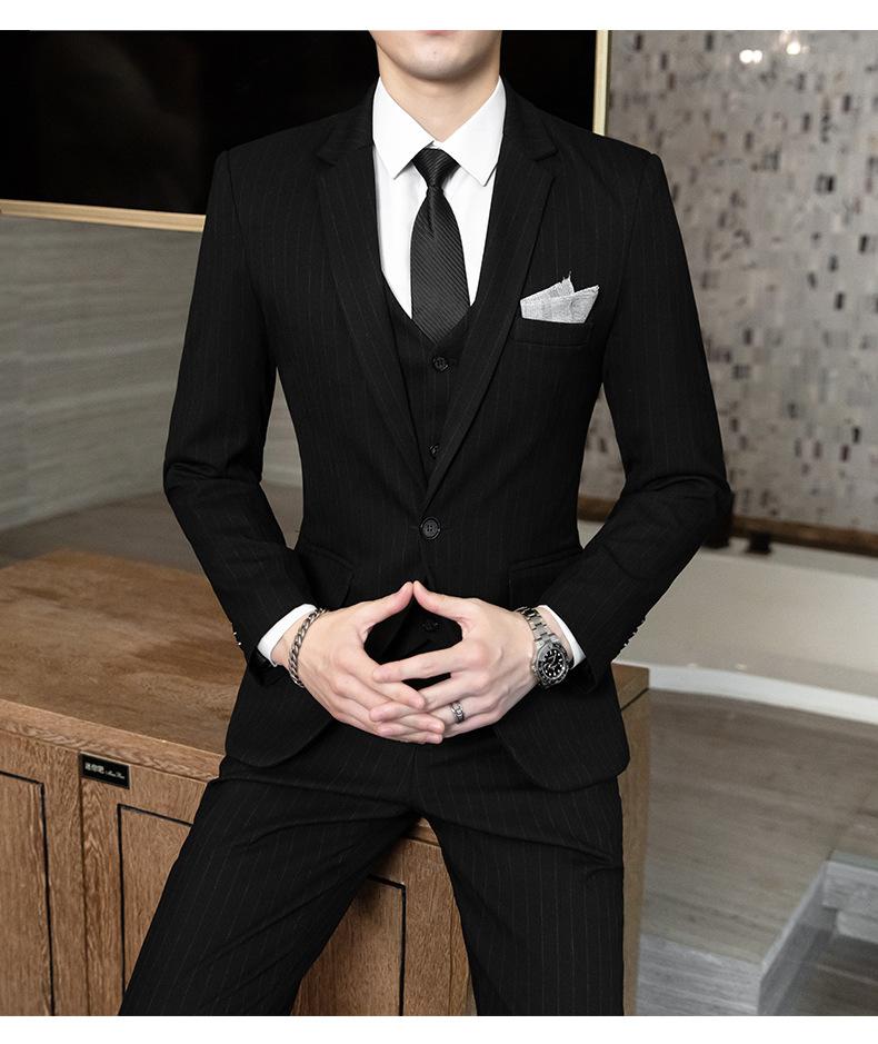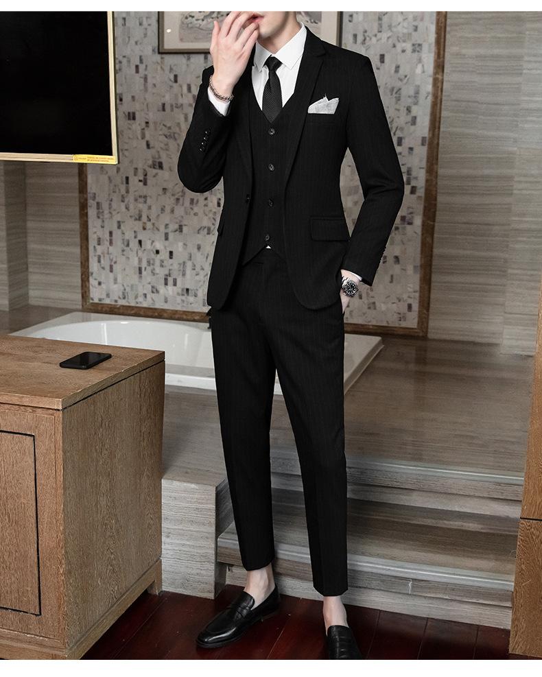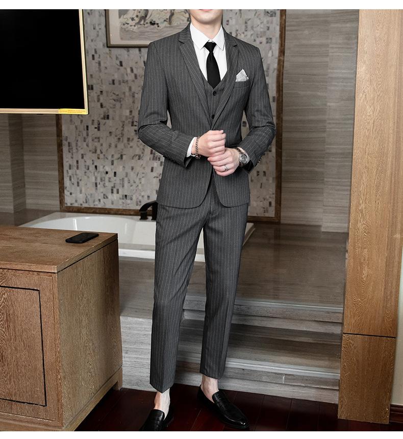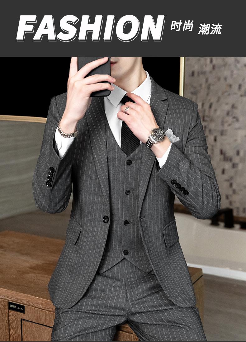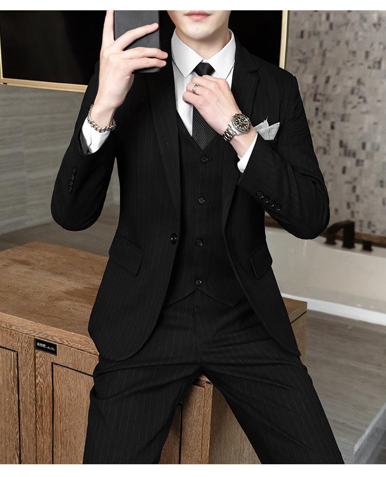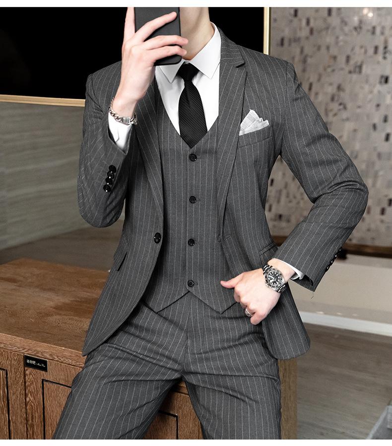 Traje de Hombre de Primavera y Otoño a Rayas de Tres Piezas 2023 Nuevo Vestido de Negocios Traje de Moda Coreana Chaqueta