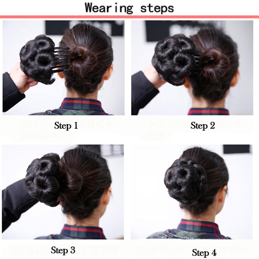 Peluca con Postizo Moño de Nueve Flores, Accesorio para el Cabello Moño, Anillo de Peluca, Accesorio para el Cabello Estilo Cheongsam Nupcial, Moño de Peluca para Cabello Corto
