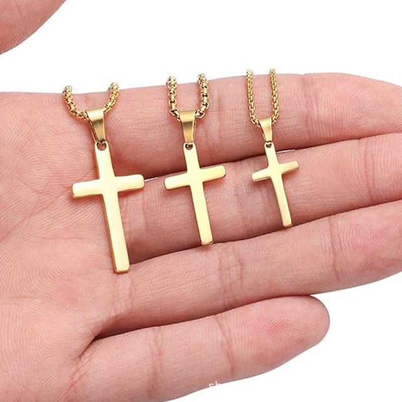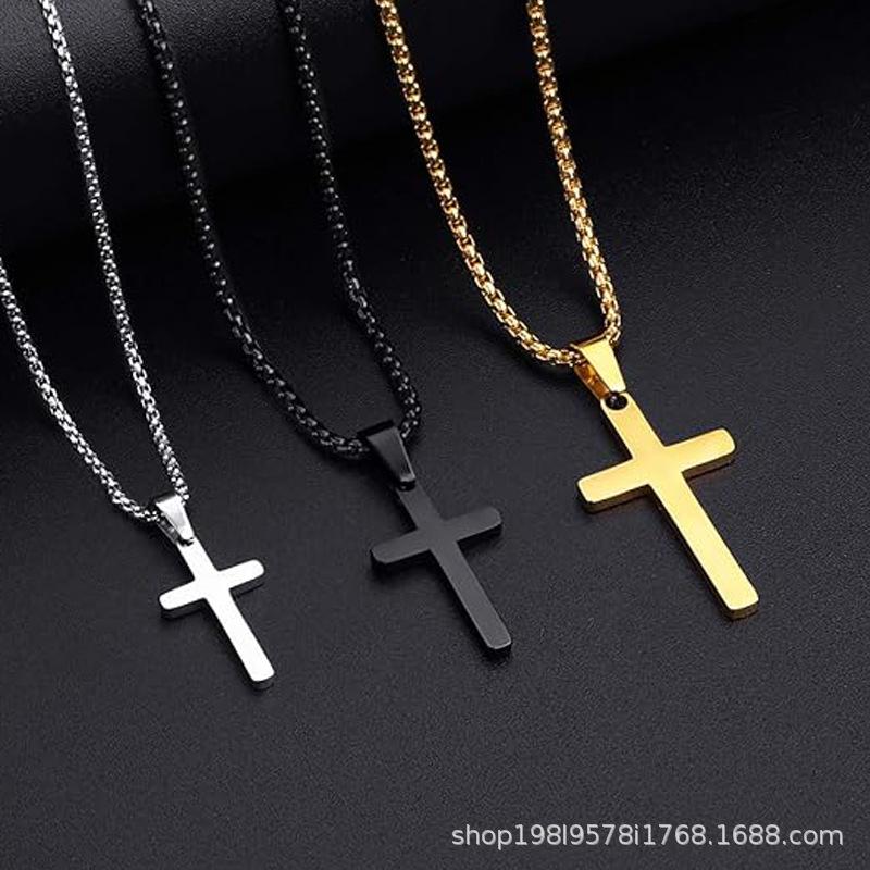 Collar con colgante de cruz de acero inoxidable titanio para hombre, tamaño grande, accesorios DIY dorados y negros para mujer, exclusivo transfronterizo vintage