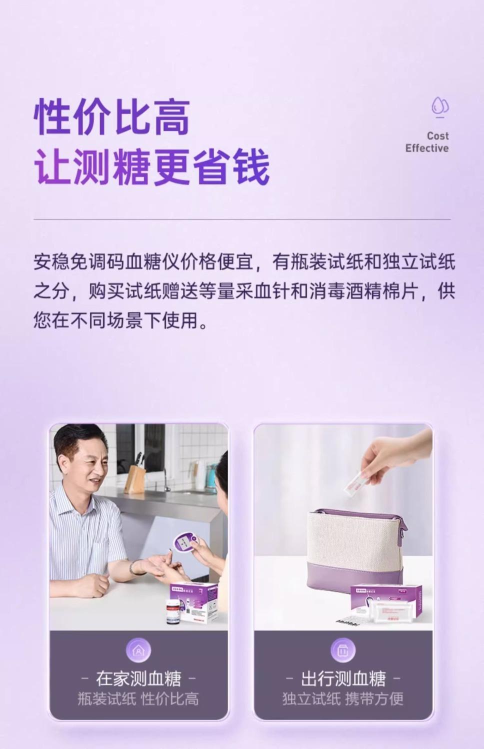 Stable and code-free blood glucose meter, Safe and free of adjustment, 50 pieces/box + 50 needles, 50 pieces o...