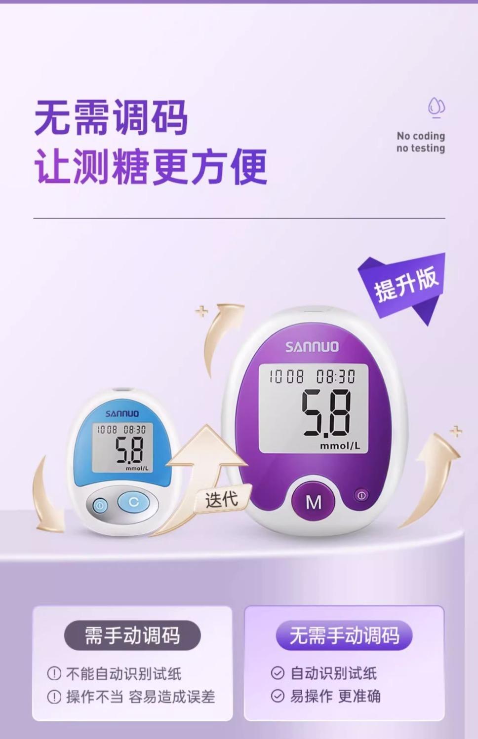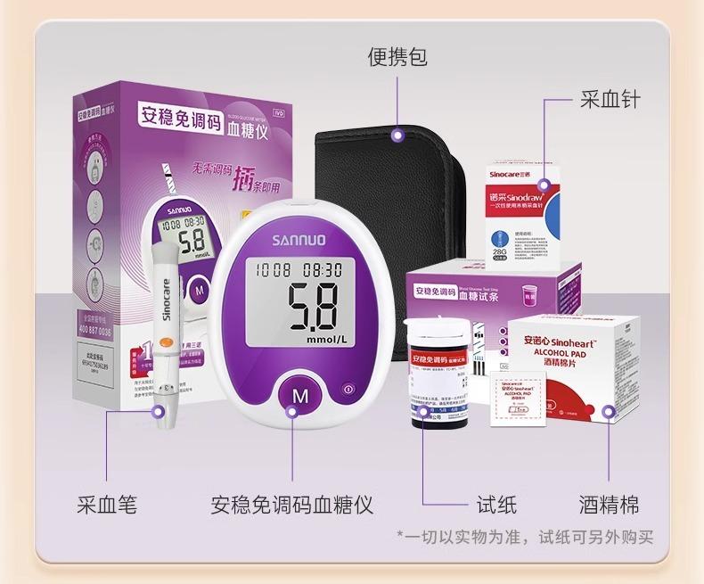 Tiras Reactivas para Glucosa en Sangre Sannuo Anwen Sin Ajuste de Código Medidor de Glucosa en Sangre Instrumento de Medición Diabetes Medidor de Glucosa en Sangre Uso Médico