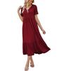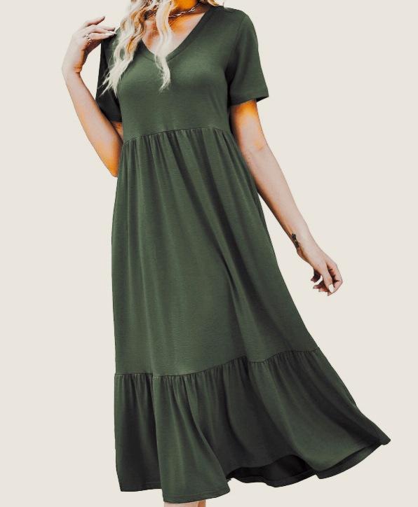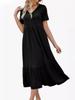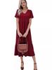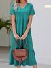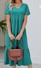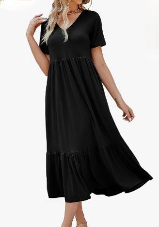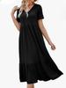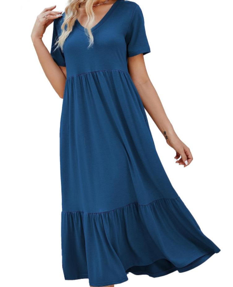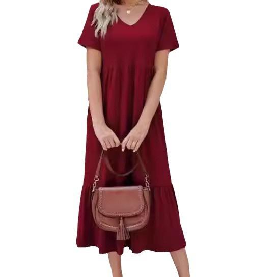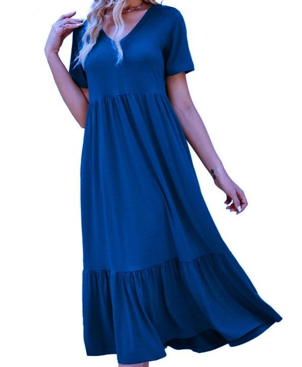 2025 Transfronterizo Amazon Estilo Europeo y Americano Verano Manga Corta Cuello en V Capas Fruncido Parcheado Falda Larga con Bolsillos
