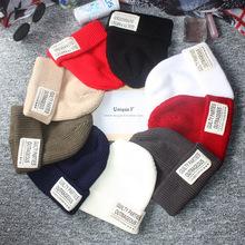 Otoño e invierno parche de alfabeto de tres estrellas para hombre coreano color sólido pareja versión coreana gorro de esquí de lana de punto para dama