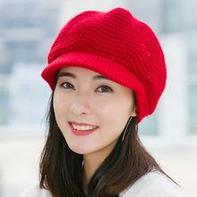 Sombrero mujer invierno sombrero coreano de piel de conejo color sólido boina lengua de pato cálido de punto lana sombrero octagonal tendencia al por mayor