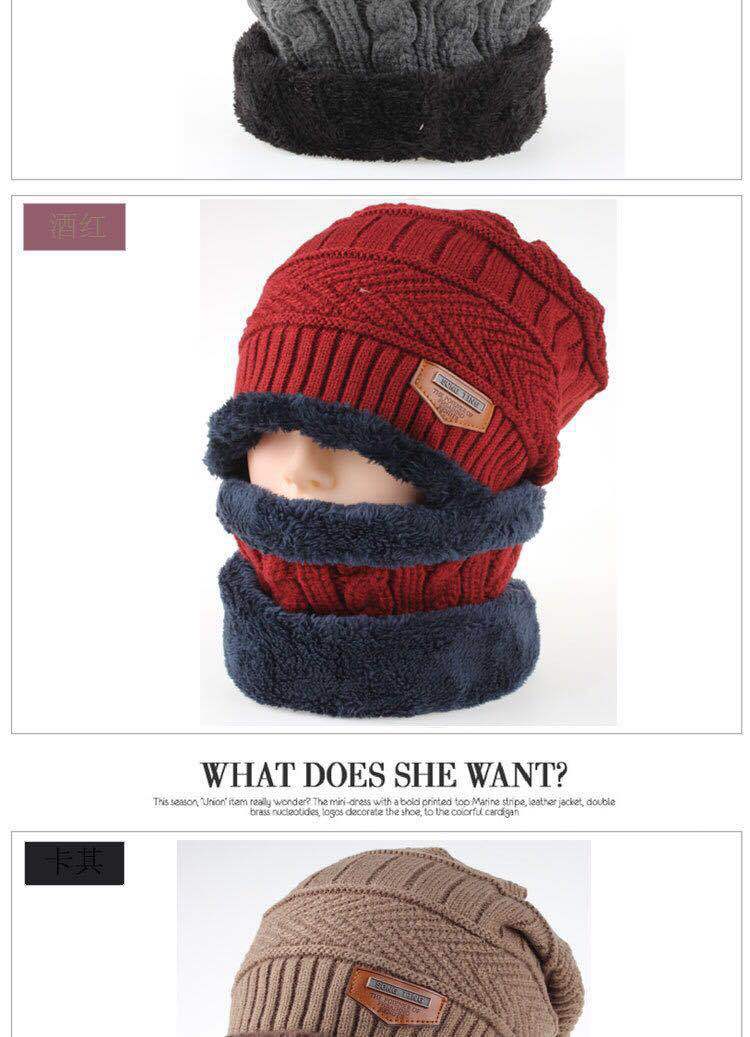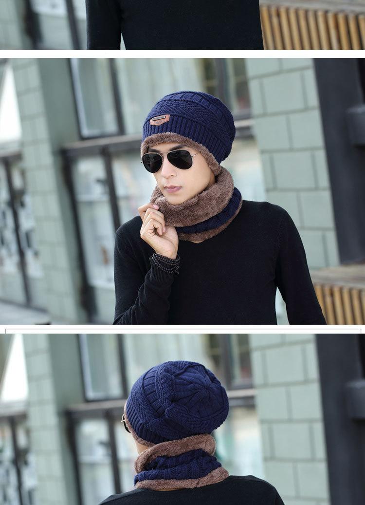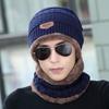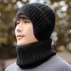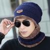 Sombrero de invierno para hombre para exteriores, bufanda, traje de dos piezas, sombrero de lana a la moda, bufanda gruesa, otoño e invierno, jersey, orejeras
