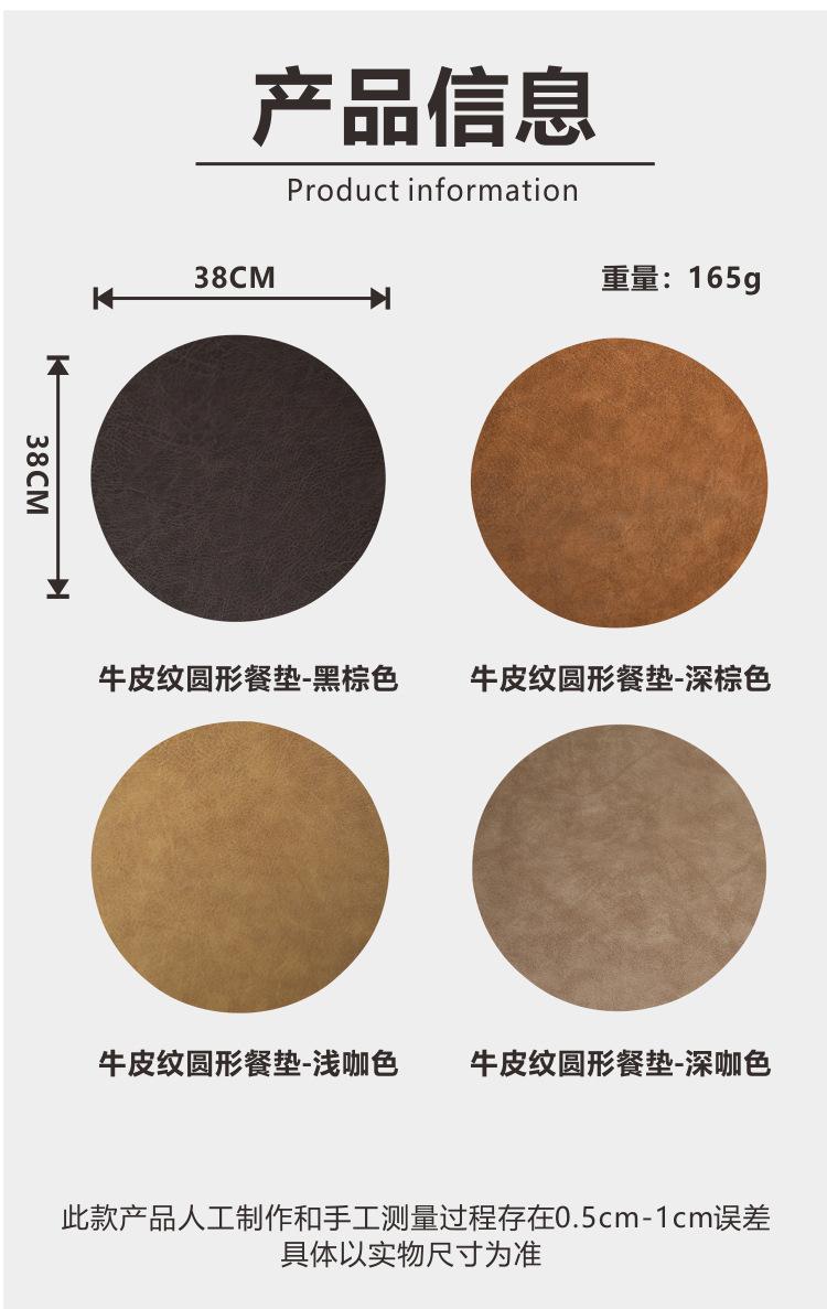 Individual Redondo Nórdico Patrón de Piel de Vaca Cuero PU Lujo Ligero Individual Aislante de Calor Hogar Hotel Mantel de Mesa Comedor Anti-Suciedad