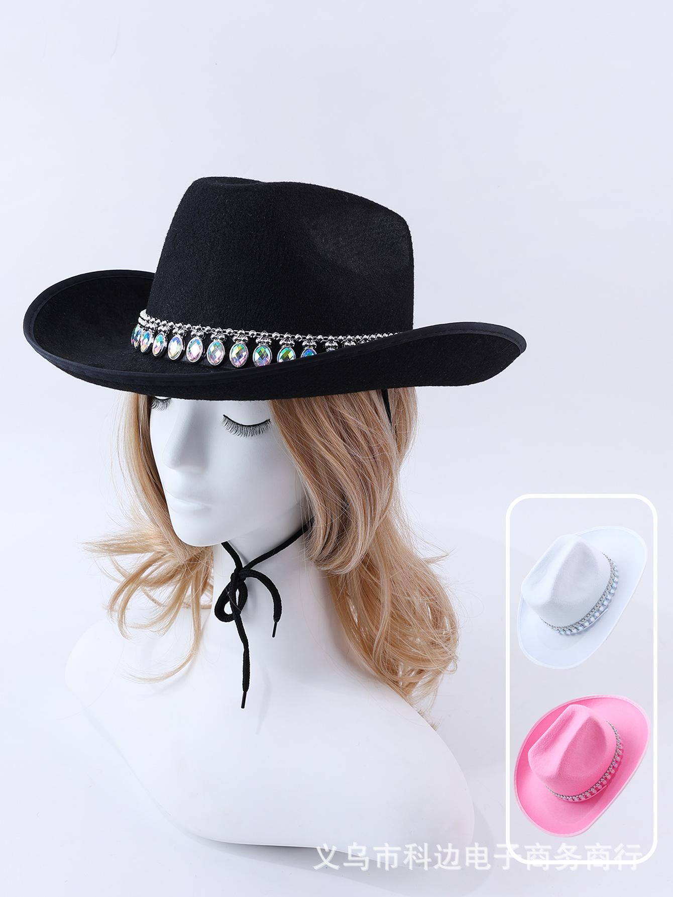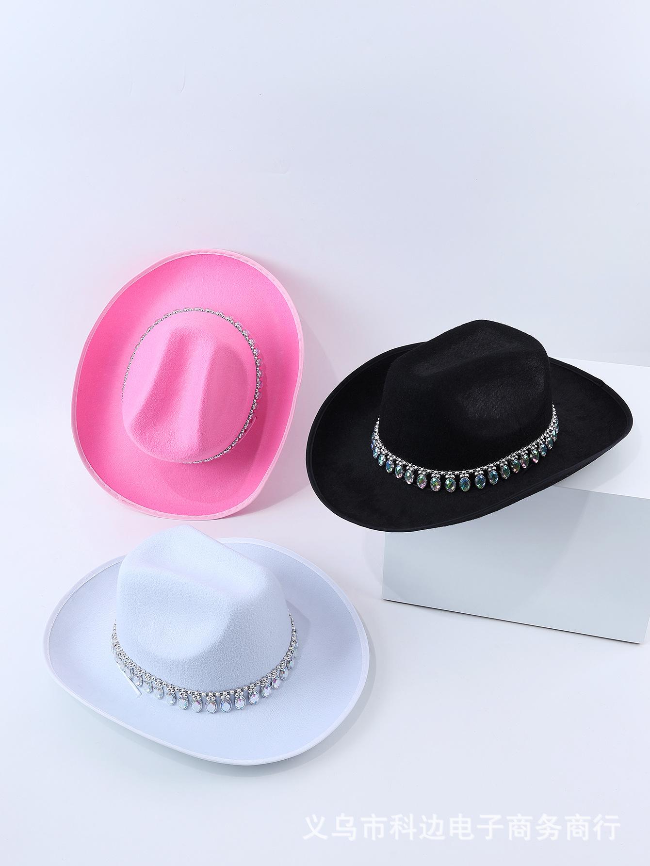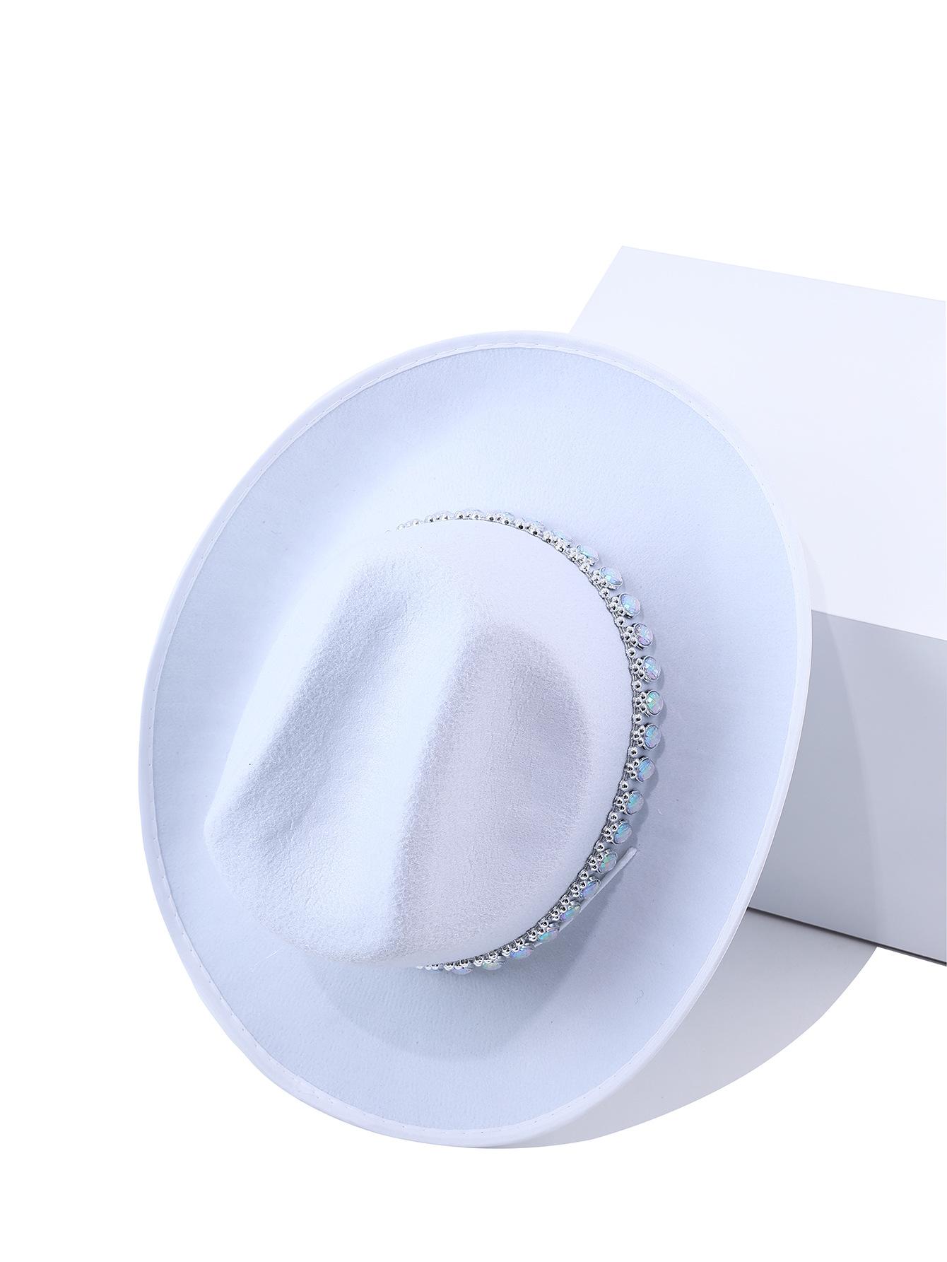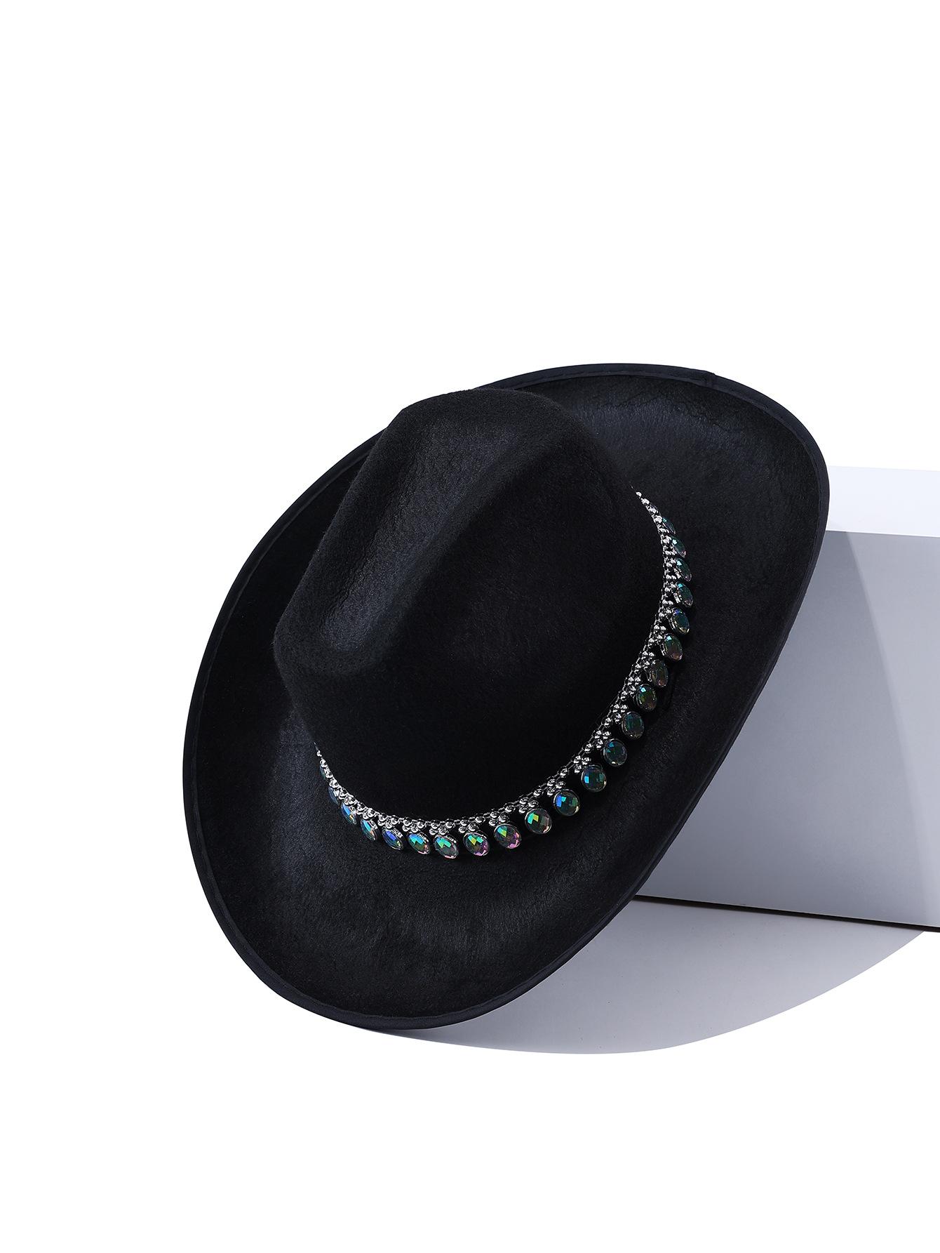 Sombrero de vaquero para mujer con explosiones transfronterizas, gran sombrero ovalado con decoración de diamantes de imitación, estilo bohemio sencillo, nuevo