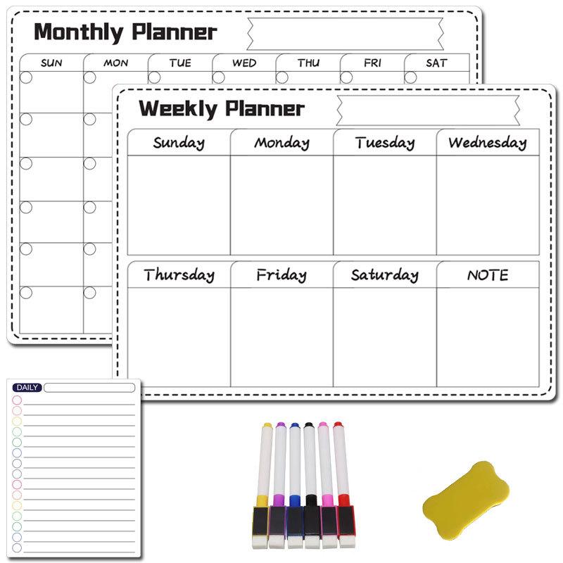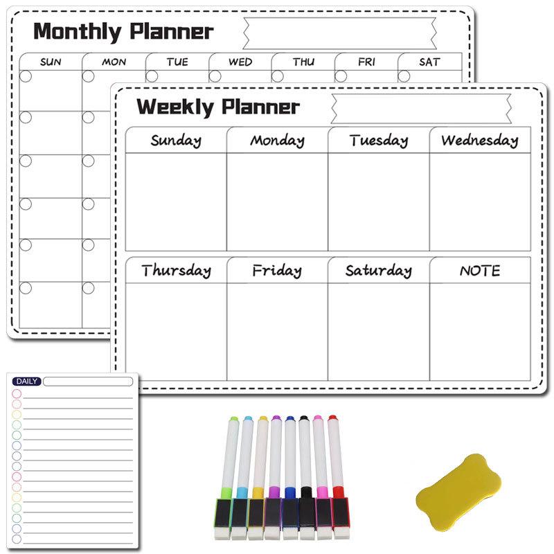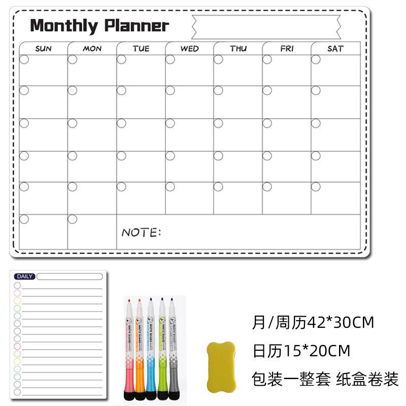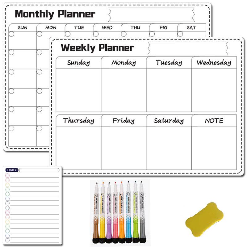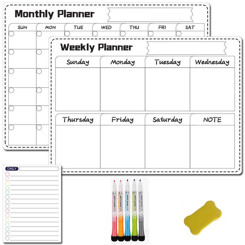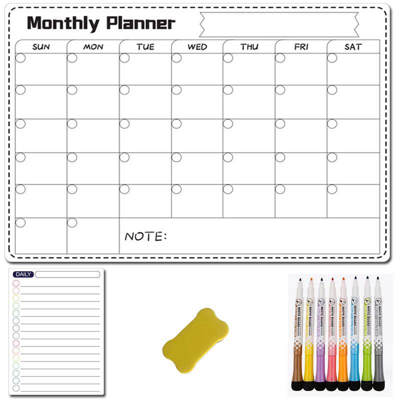 Fábrica a3 Borrable Mes Semana Horario Pizarra Blanca Suave Magnética Calendario de Borrado en Seco Adhesivo Negro para Refrigerador Pizarra de Mensajes traje