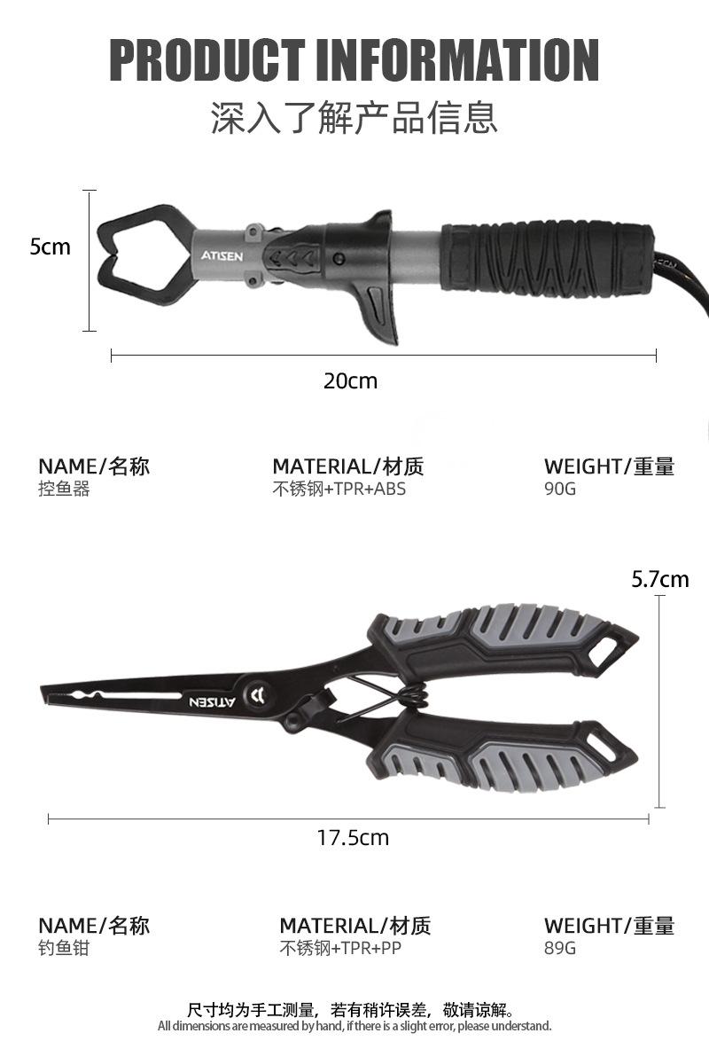 Juego de pinzas para pesca al aire libre, pinzas multifuncionales para pesca, de acero inoxidable, para control de peces vivos, juego de hebillas, pinzas para pesca de línea