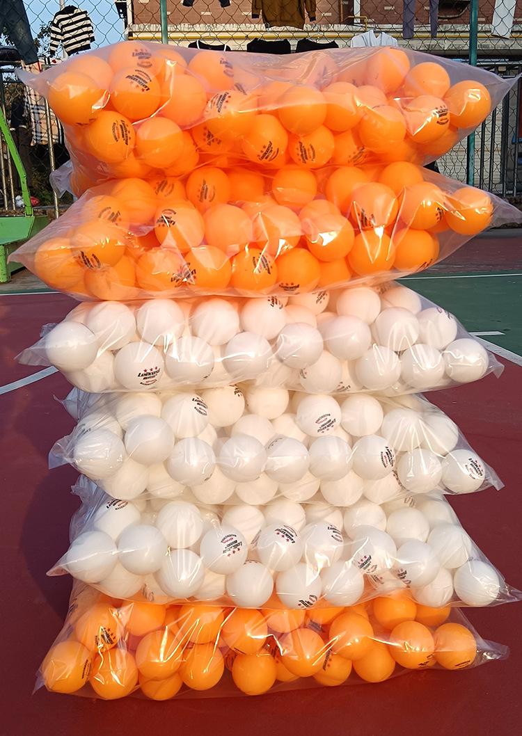 [144 white samsung table tennis balls], [144 yellow samsung table tennis balls], [144 yellow and white mixed t...
