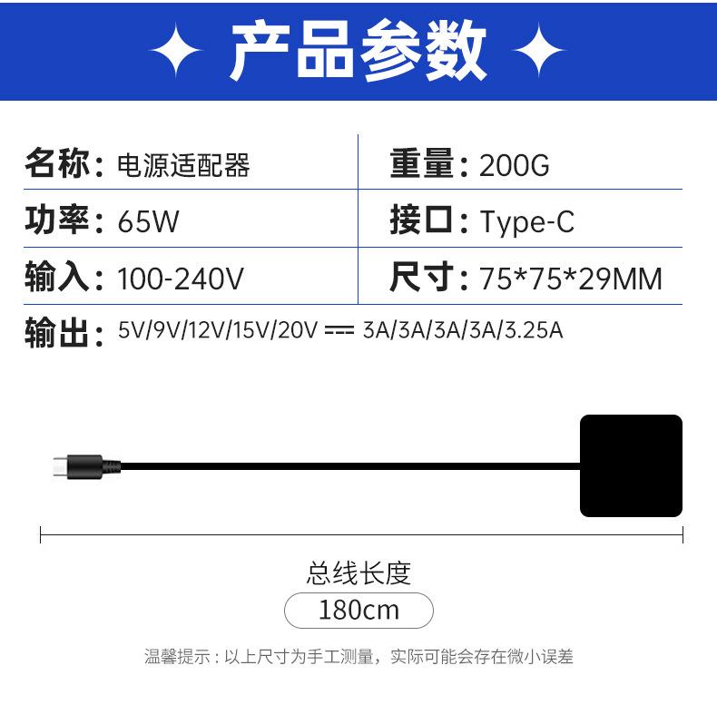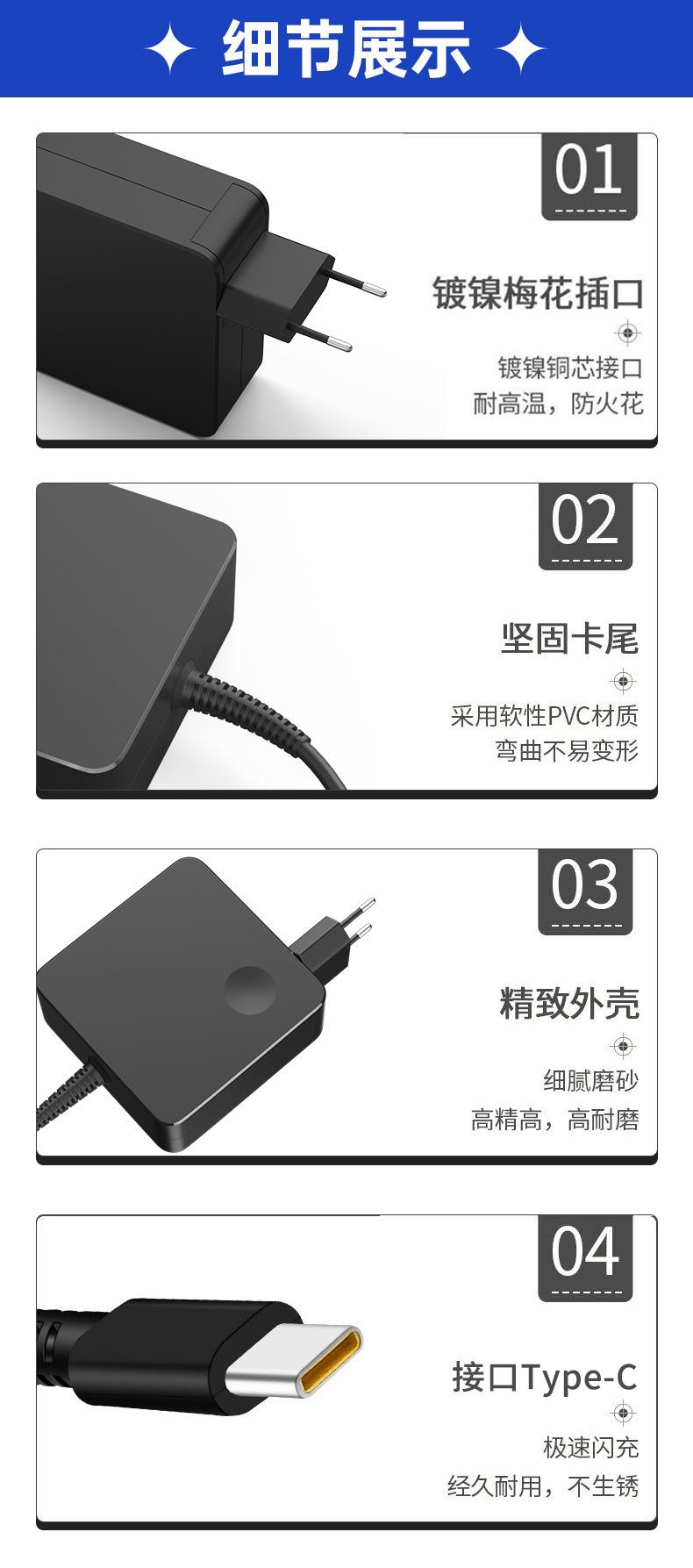 Adecuado para Adaptador de Corriente para Laptop Lenovo 65W 20V3.25A Cargador de Computadora Carga Rápida Interfaz Tipo C