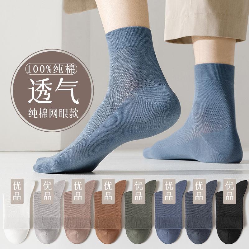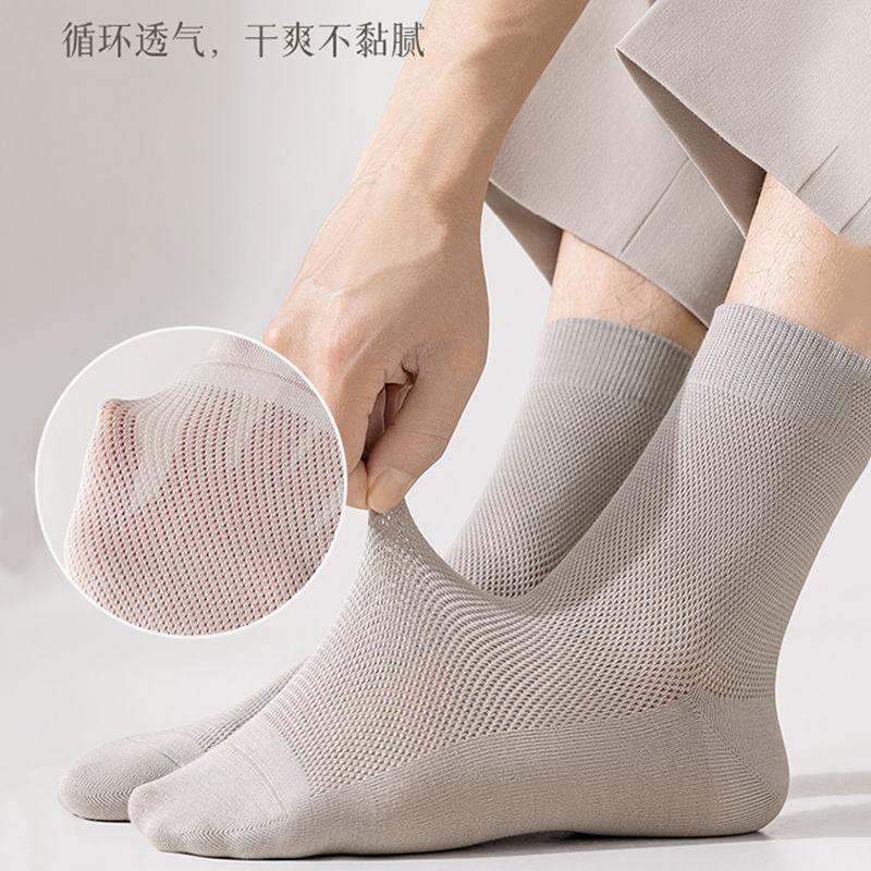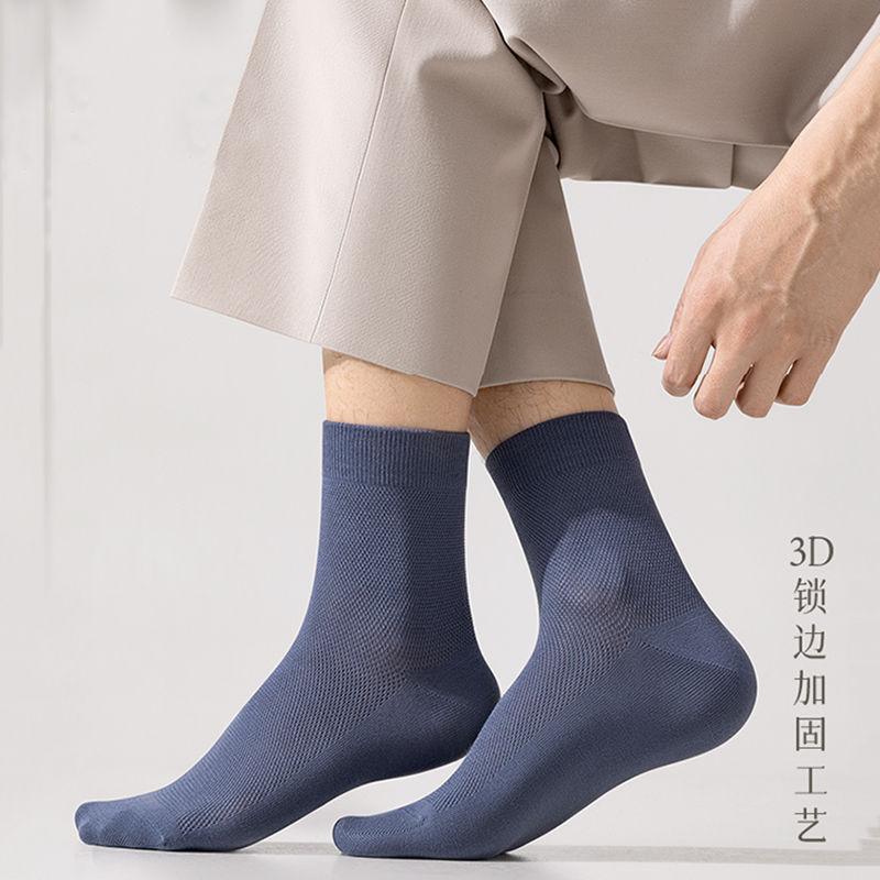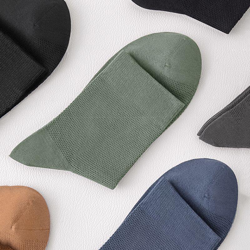 Calcetines de hombre de color liso para primavera y verano, finos, de negocios, para las cuatro estaciones, de media pantorrilla, de malla transpirable, absorbentes del sudor, desodorantes, calcetines de hombre de media pantorrilla