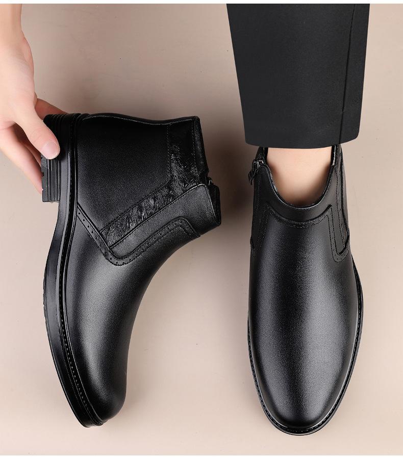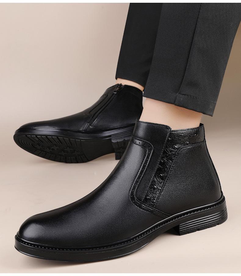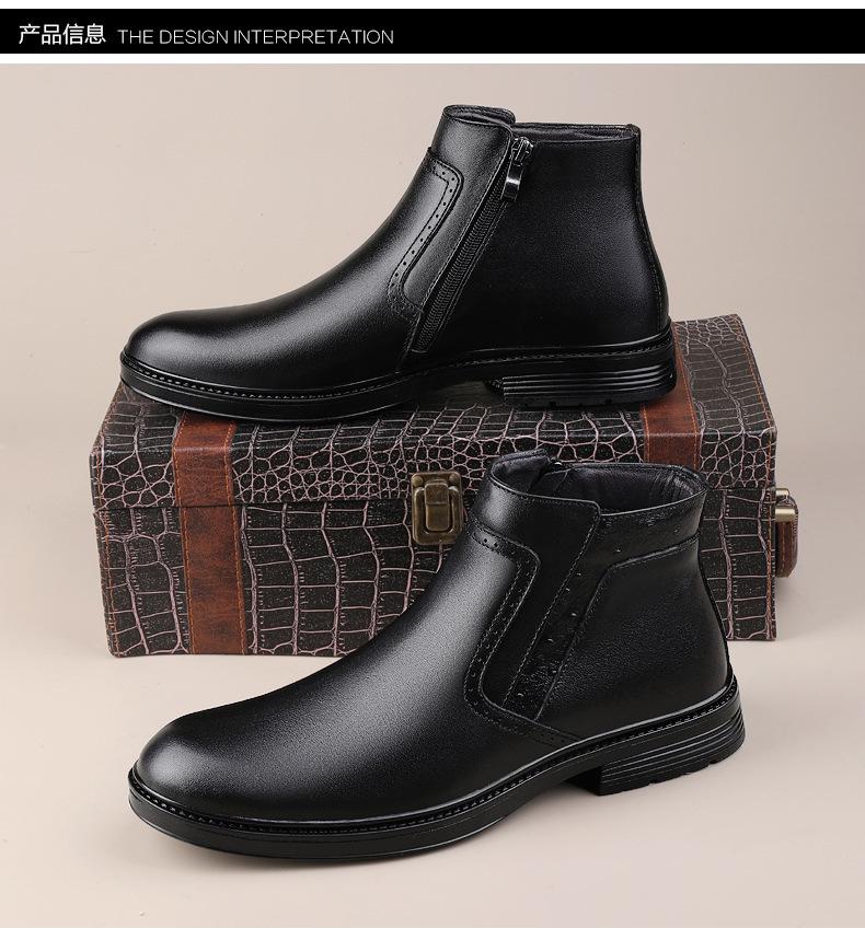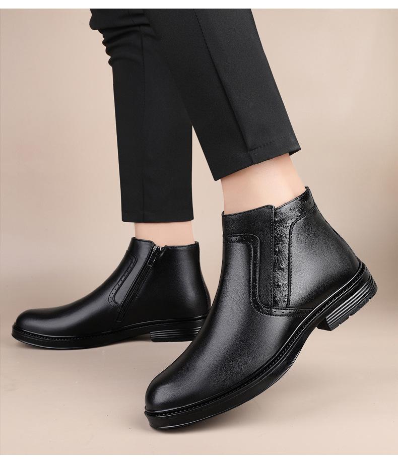 Botas Chelsea nuevas de otoño e invierno para hombre, botas de caña media de cuero con forro polar de algodón, botas de negocios con cremallera lateral, zapatos para hombre
