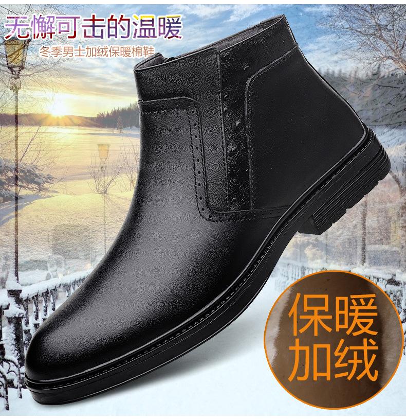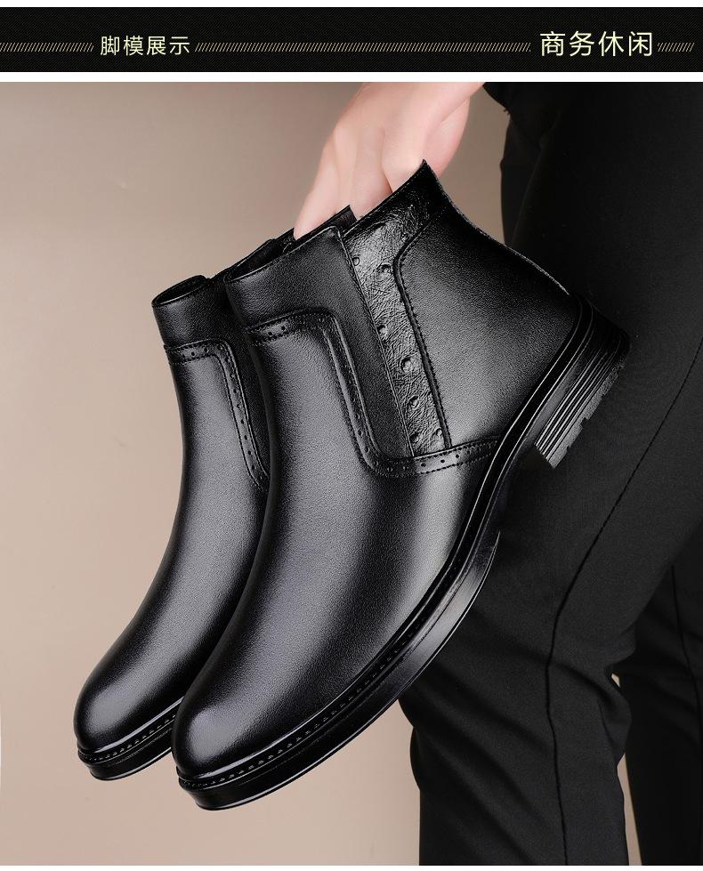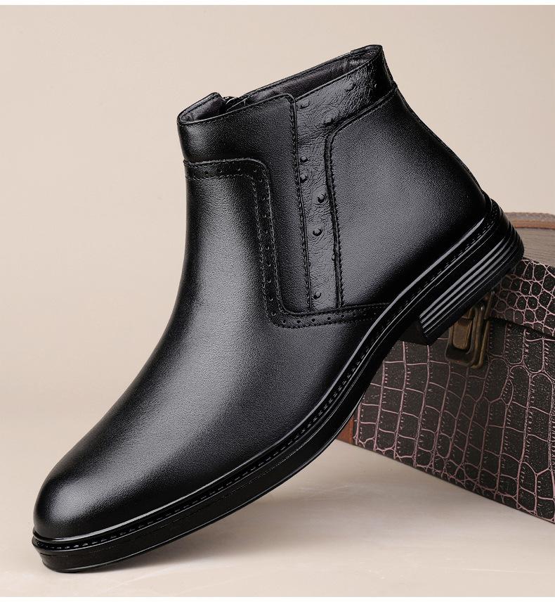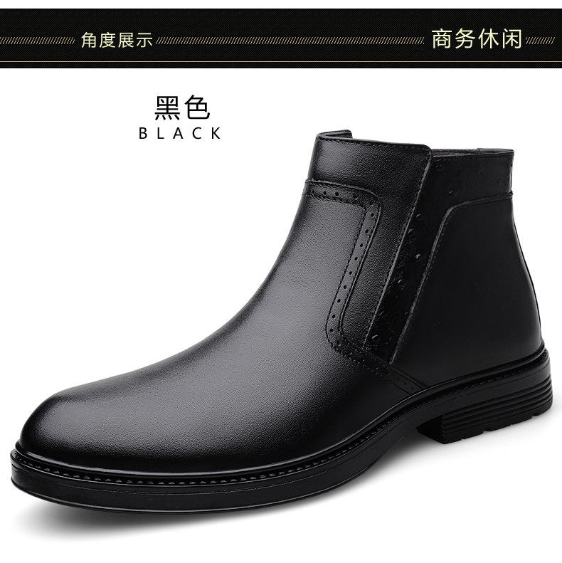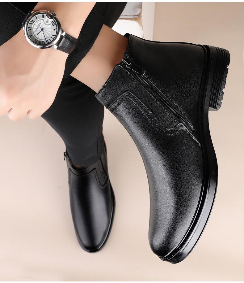 Botas Chelsea nuevas de otoño e invierno para hombre, botas de caña media de cuero con forro polar de algodón, botas de negocios con cremallera lateral, zapatos para hombre