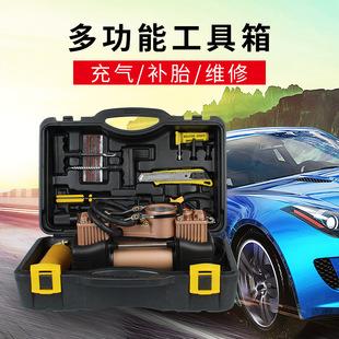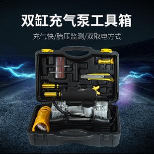 Venta directa de fábrica, nueva bomba de aire de doble cilindro para automóvil, cilindro dorado, bomba de aire para neumáticos de alta potencia, caja de herramientas, bomba de aire