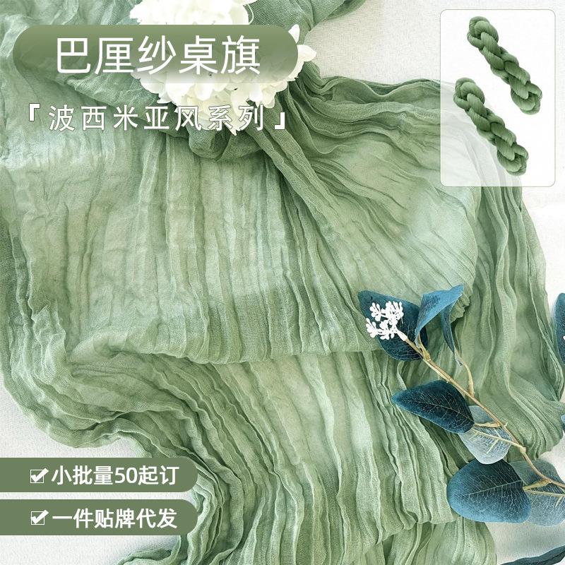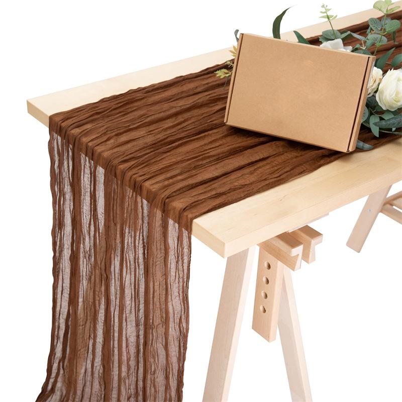 Camino de mesa plisado de tela de hilo Bali transfronterizo, camino de mesa de queso, mantel de estilo bohemio, decoración navideña para fiesta de boda, camino de mesa