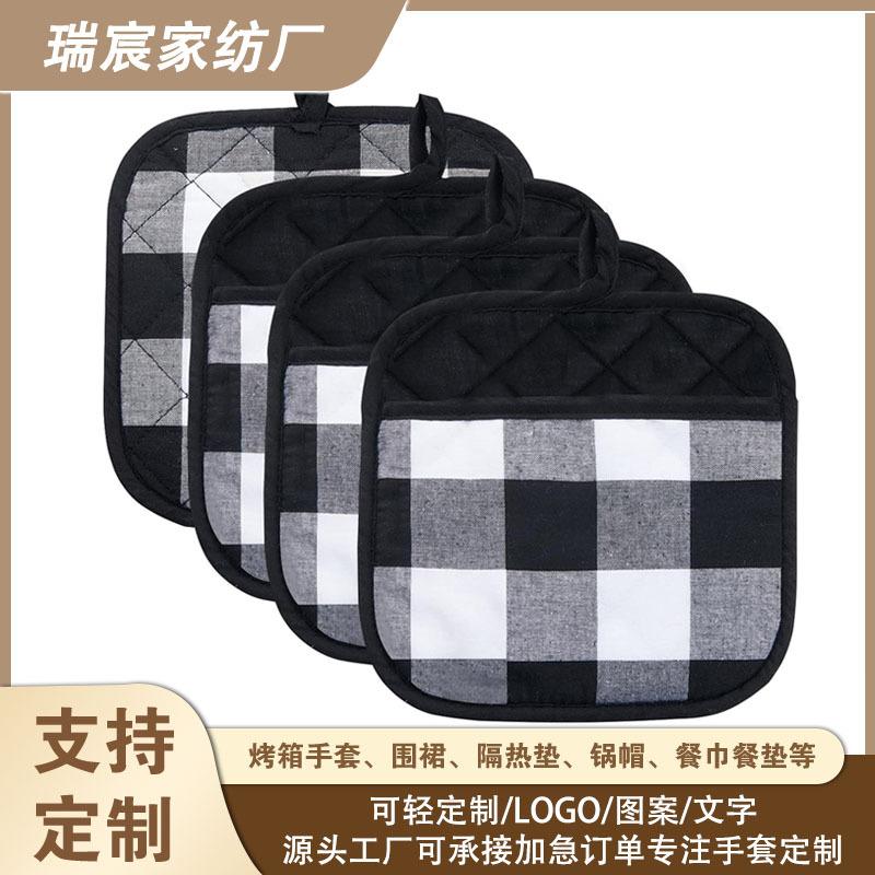 Guantes antiquemaduras de algodón puro a cuadros de estilo simple superventas transfronterizos, engrosados, resistentes a altas temperaturas, almohadilla aislante para hornear en microondas, hogar