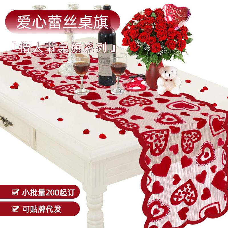 Camino de mesa individual de encaje de amor para el Día de San Valentín transfronterizo, mantel de encaje, paño para té, decoración de ambiente de fiesta de boda