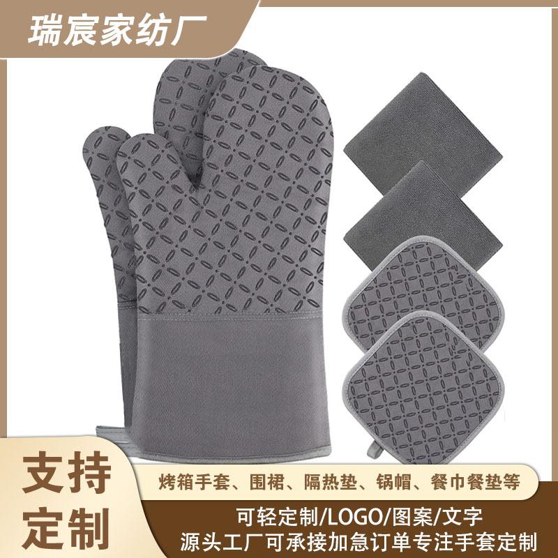 Guantes de goma extendidos antideslizantes estilo americano de gran venta en Amazon, guantes gruesos antiquemaduras para horno, juego de almohadillas aislantes para hornear