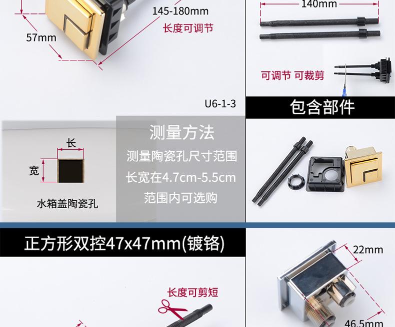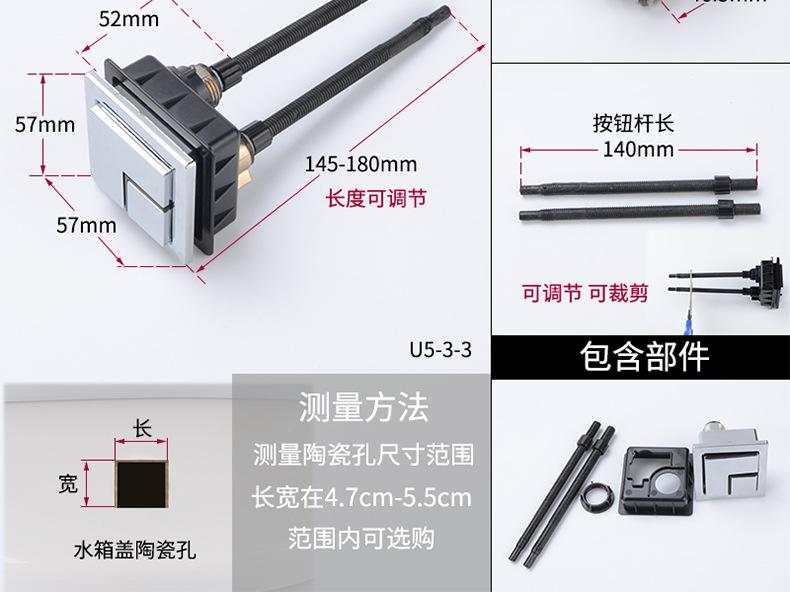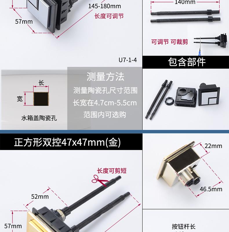 Interruptor de botón de descarga de inodoro, botón de tanque de inodoro, botón cuadrado doble, accesorios de botón de inodoro universales