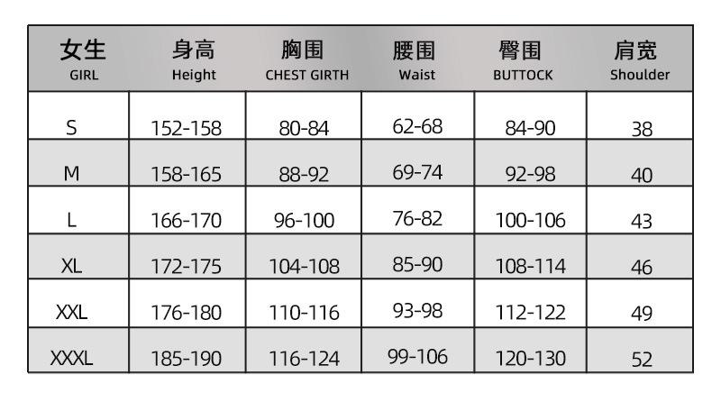 S, M, L, XL, XXL, XXXL