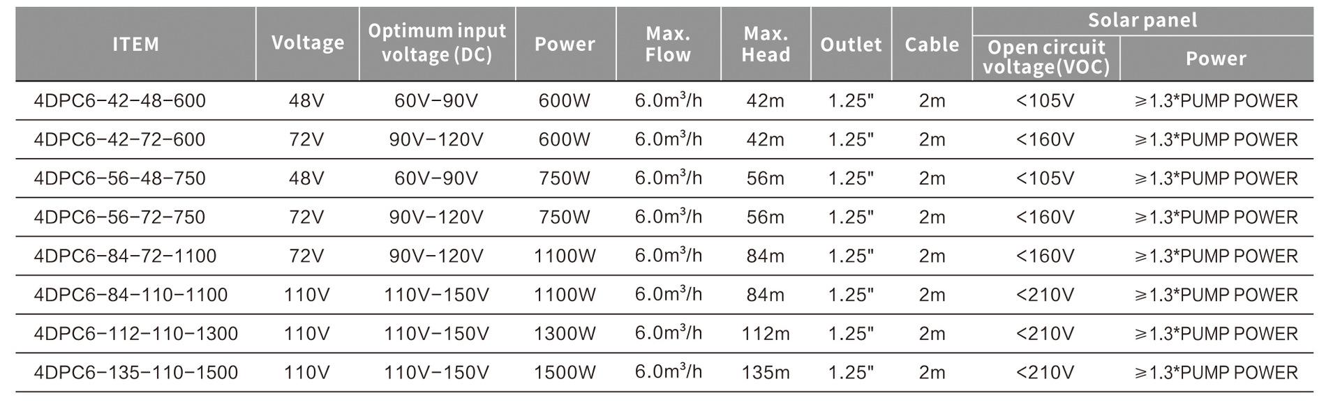 4DPC4.5-110-72-1100, 4DPC4.5-110-110-1100, 4DPC6-42-48-600, 4DPC6-42-72-600, 4DPC6-56-48-750, 4DPC6-56-72-750