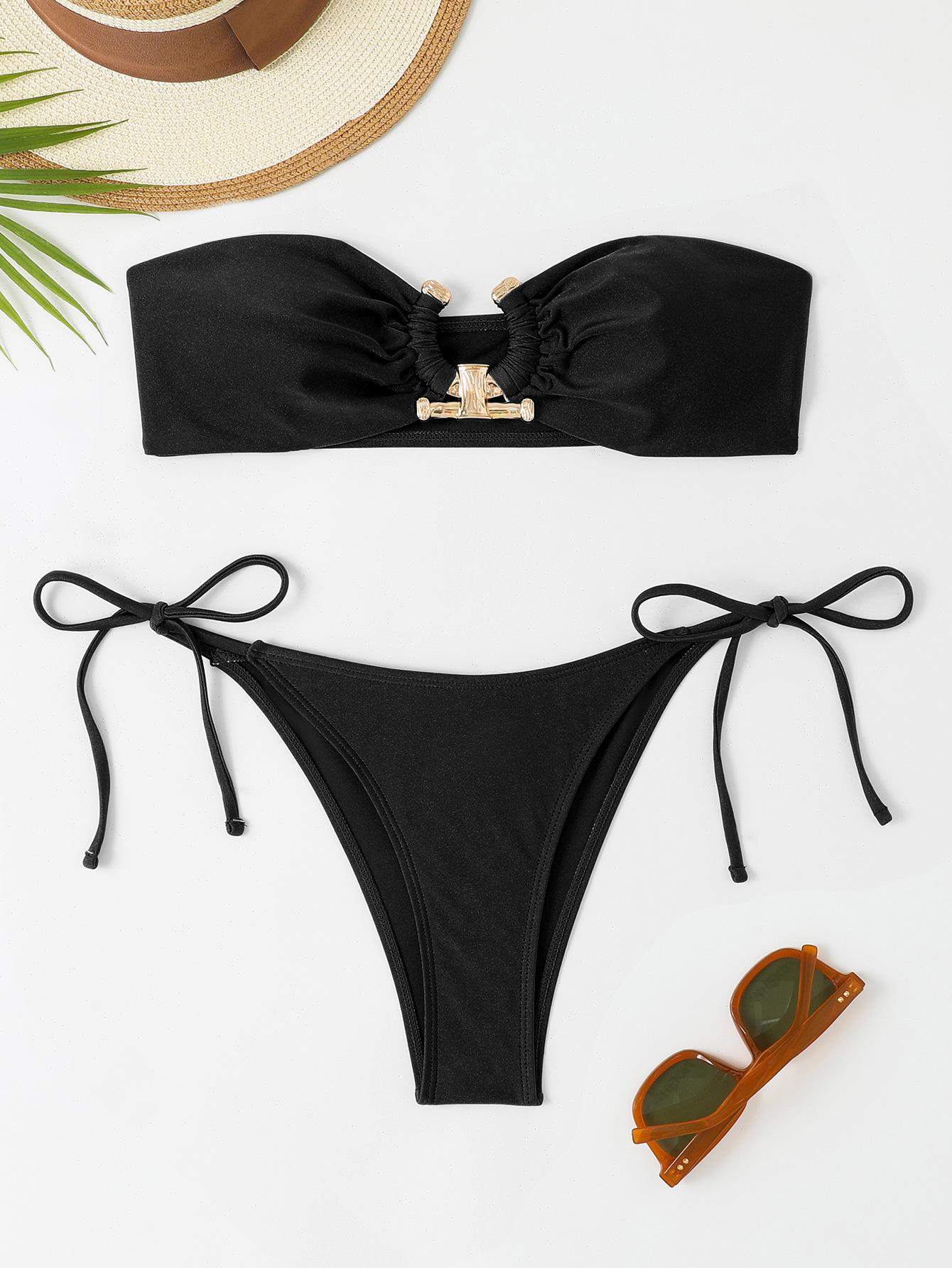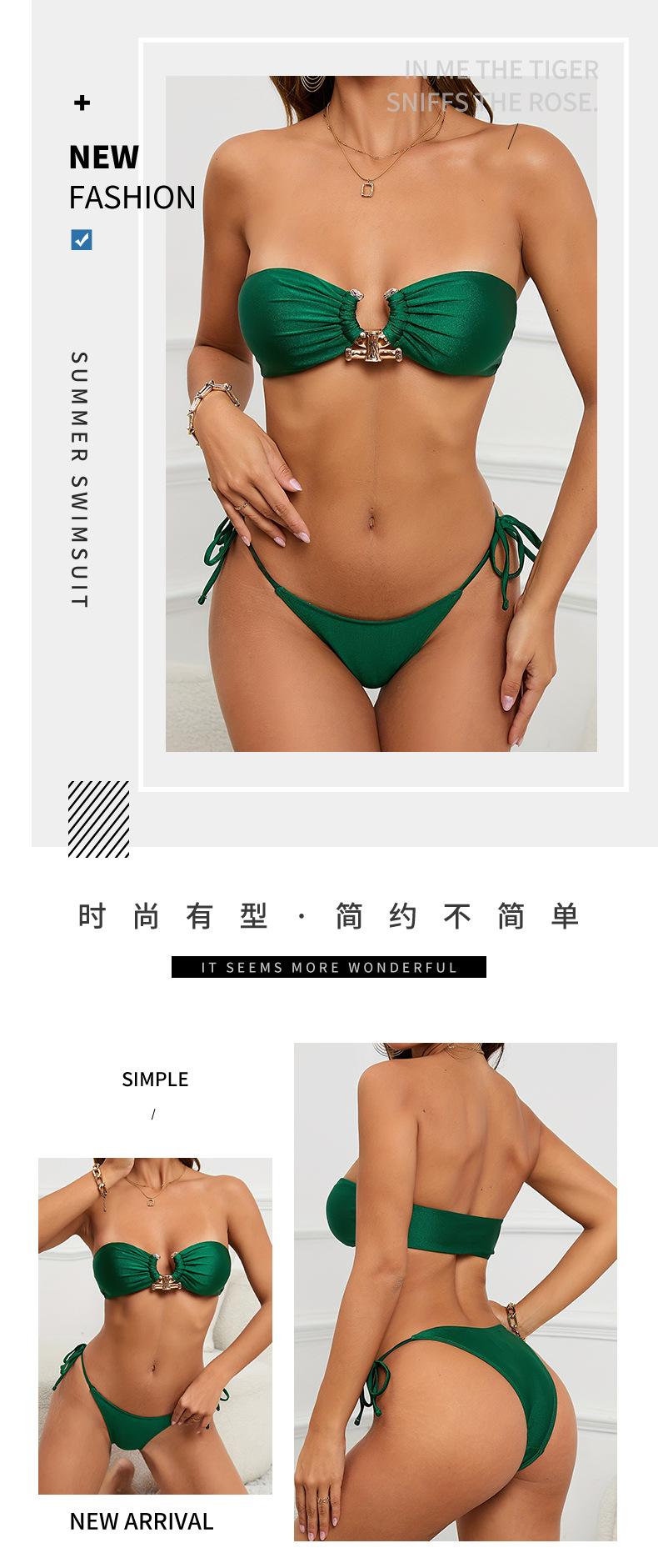 2024 nuevo traje de baño de bikini dividido de tela ligera de comercio exterior europeo y americano con top de tubo transfronterizo de Amazon
