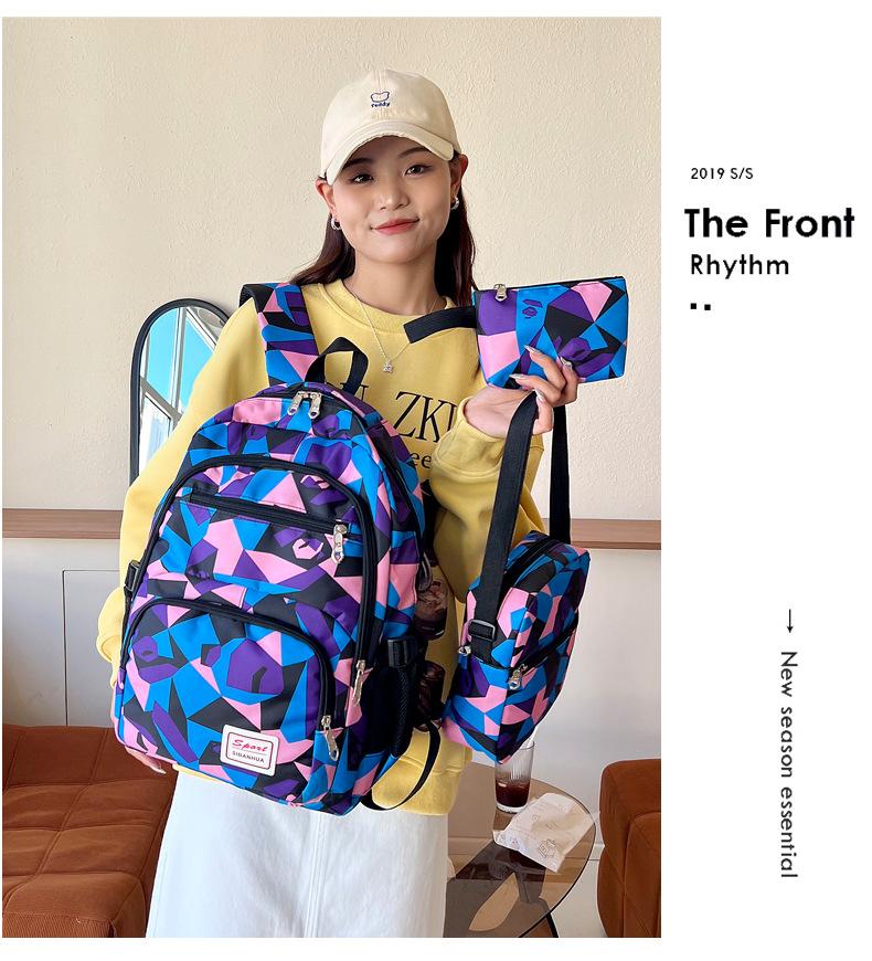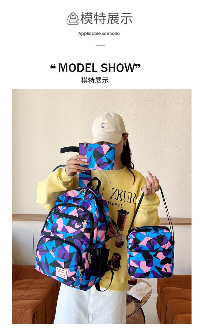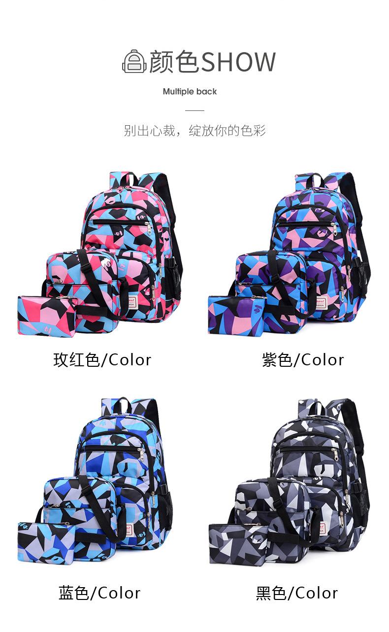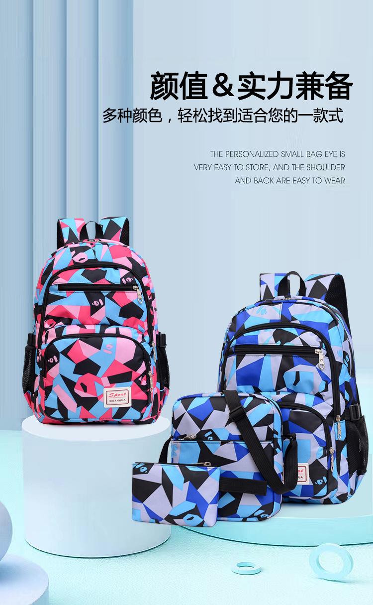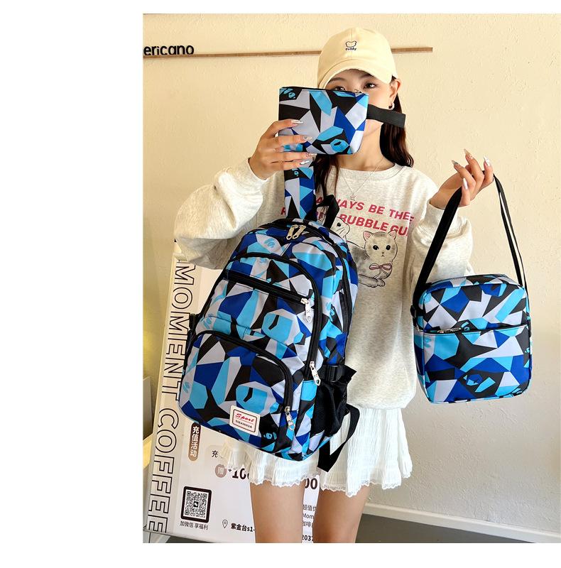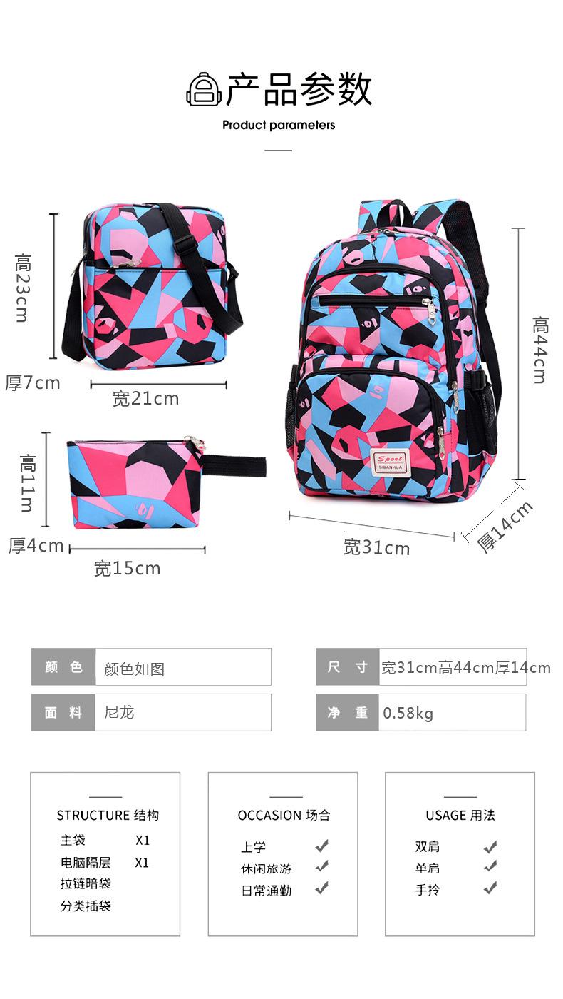 Mochila para Estudiantes Secundaria Preparatoria Estudiantes Mochila de Gran Capacidad Mochila de Nylon Anti-Salpicaduras Bolsa de Tres Piezas Mochila Mic Transfronteriza