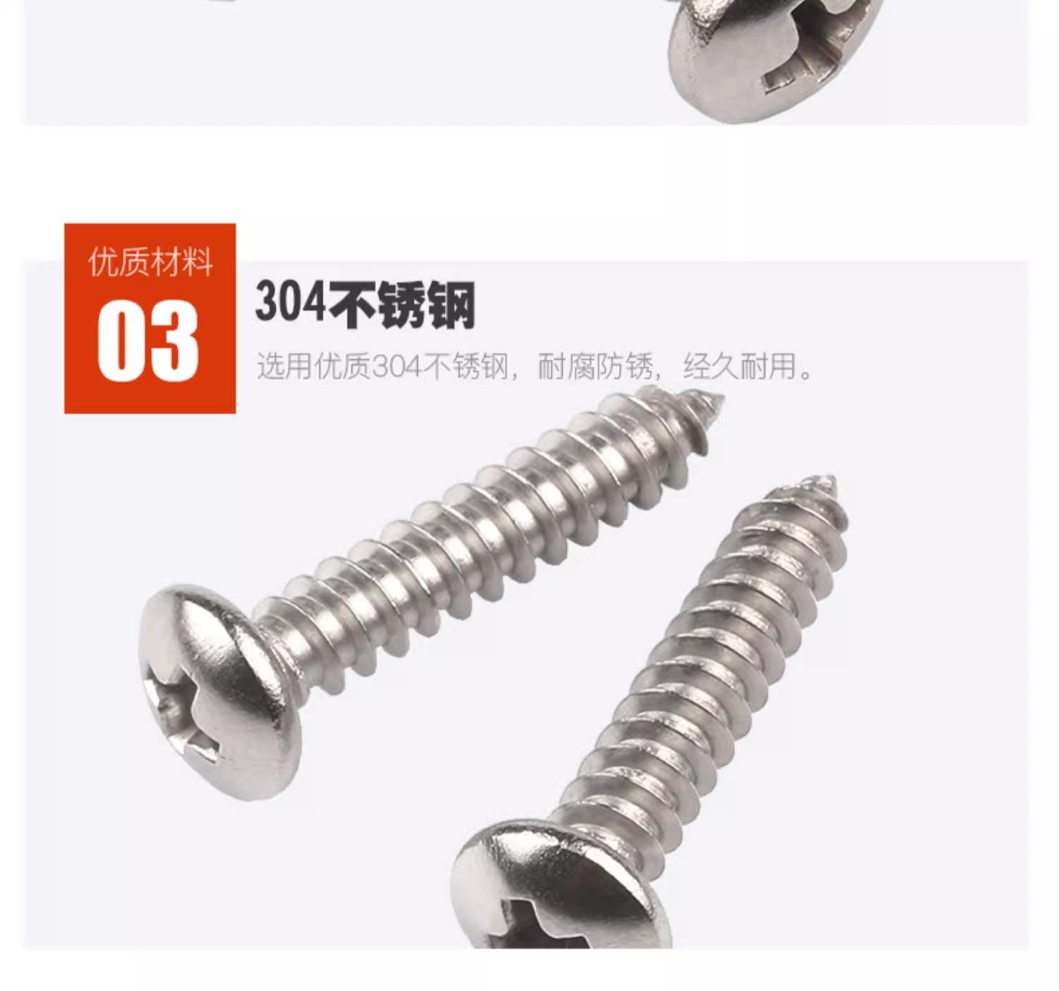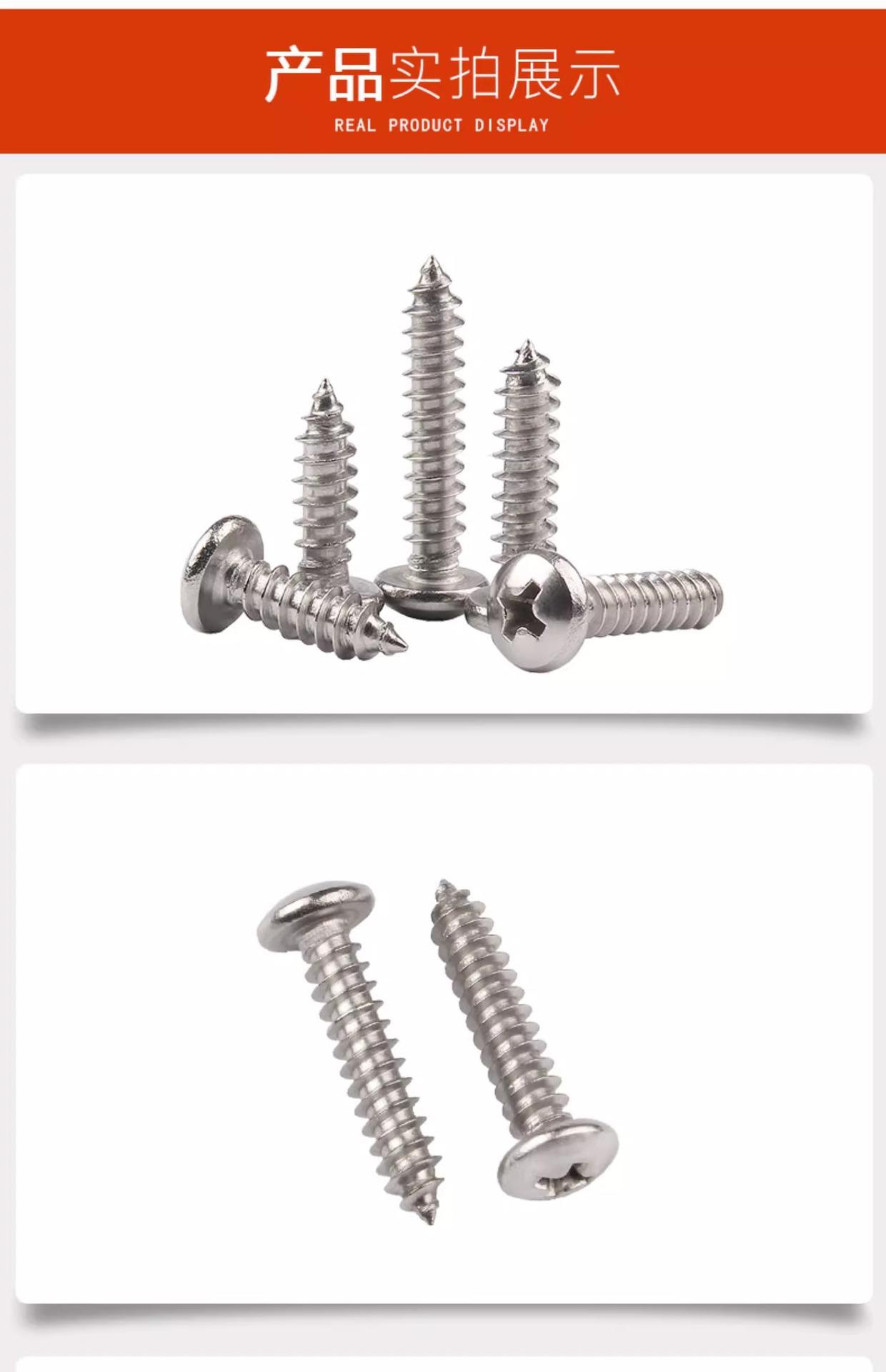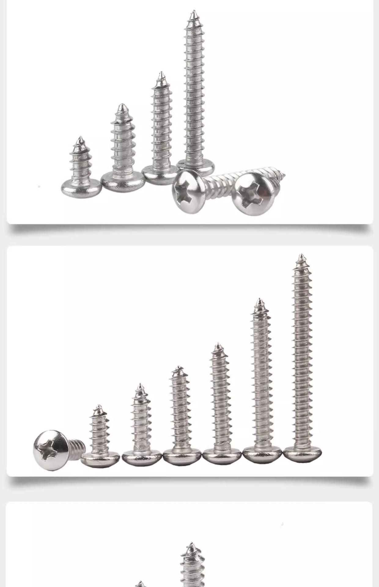 Tornillo autorroscante de cabeza redonda, acero inoxidable 304, cabeza plana cruzada, tornillo autorroscante de cola puntiaguda, tornillo para madera M3/M3.5/M4M5