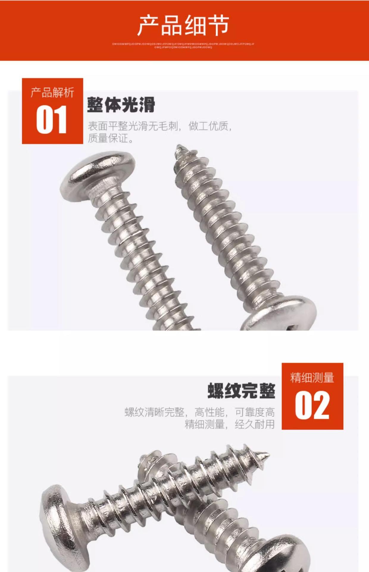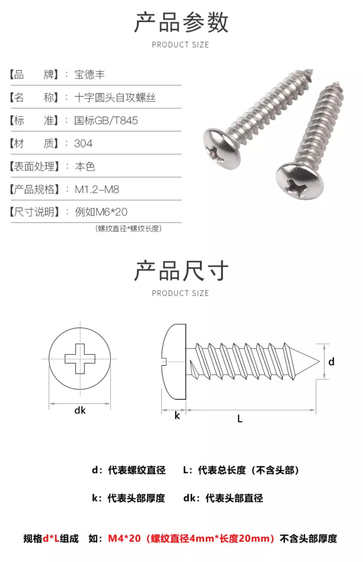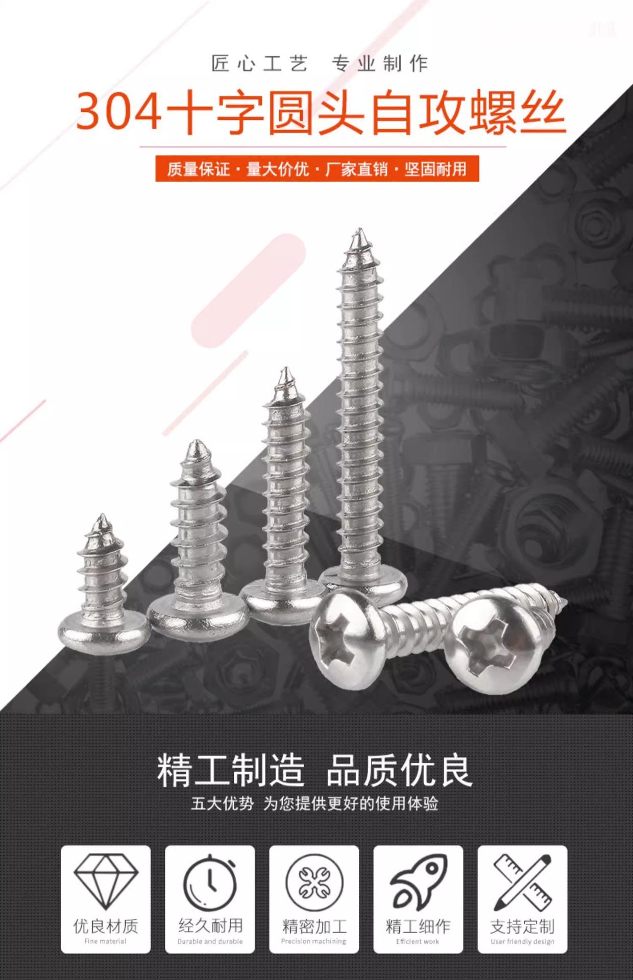 Tornillo autorroscante de cabeza redonda, acero inoxidable 304, cabeza plana cruzada, tornillo autorroscante de cola puntiaguda, tornillo para madera M3/M3.5/M4M5