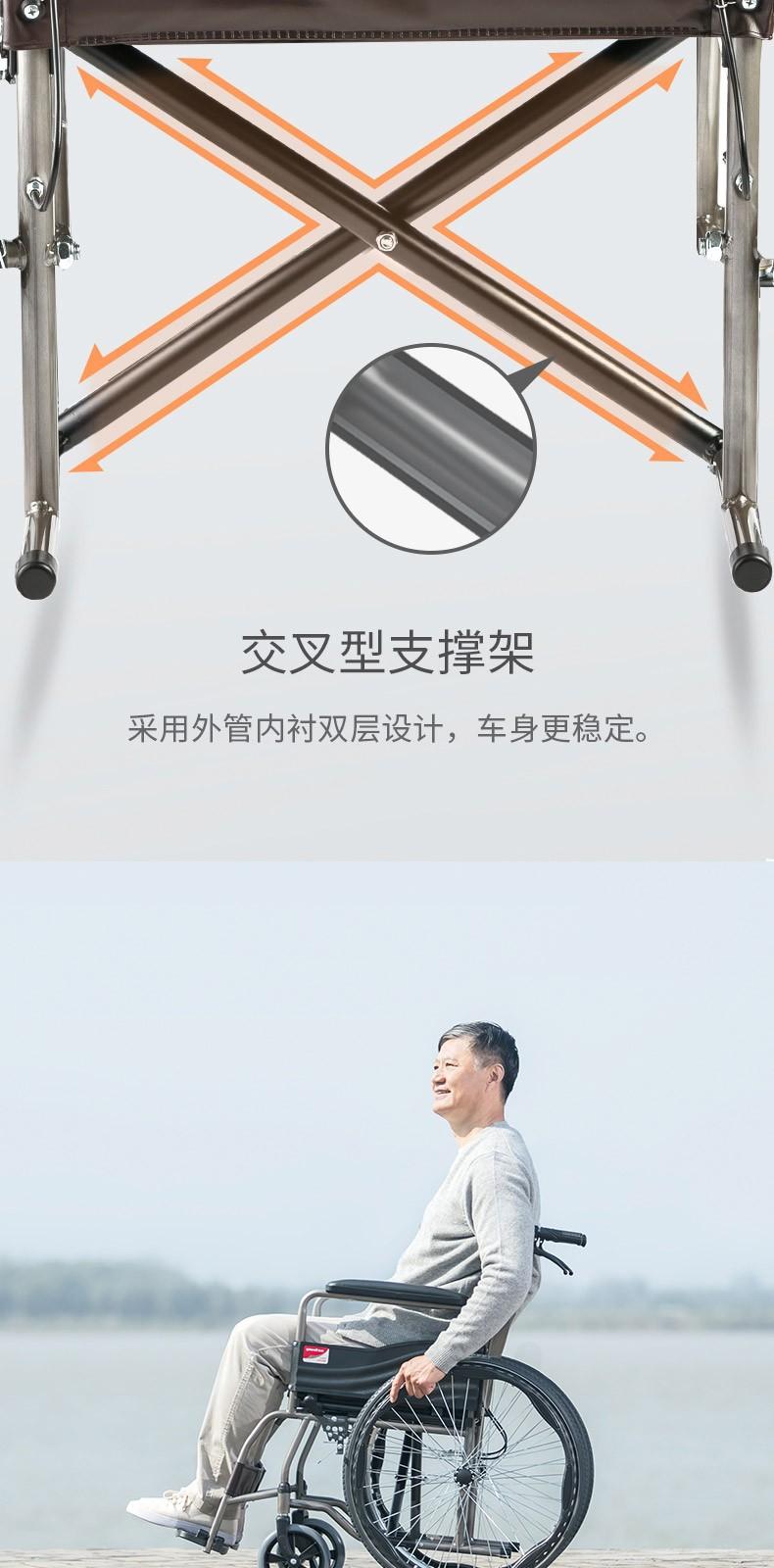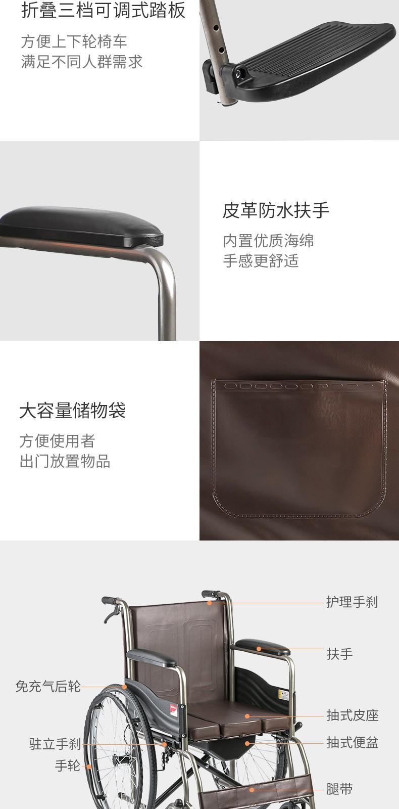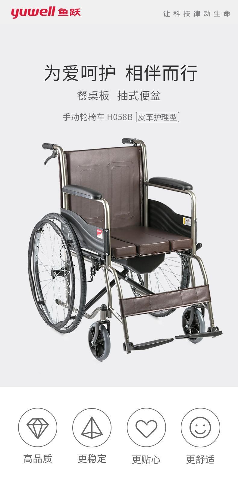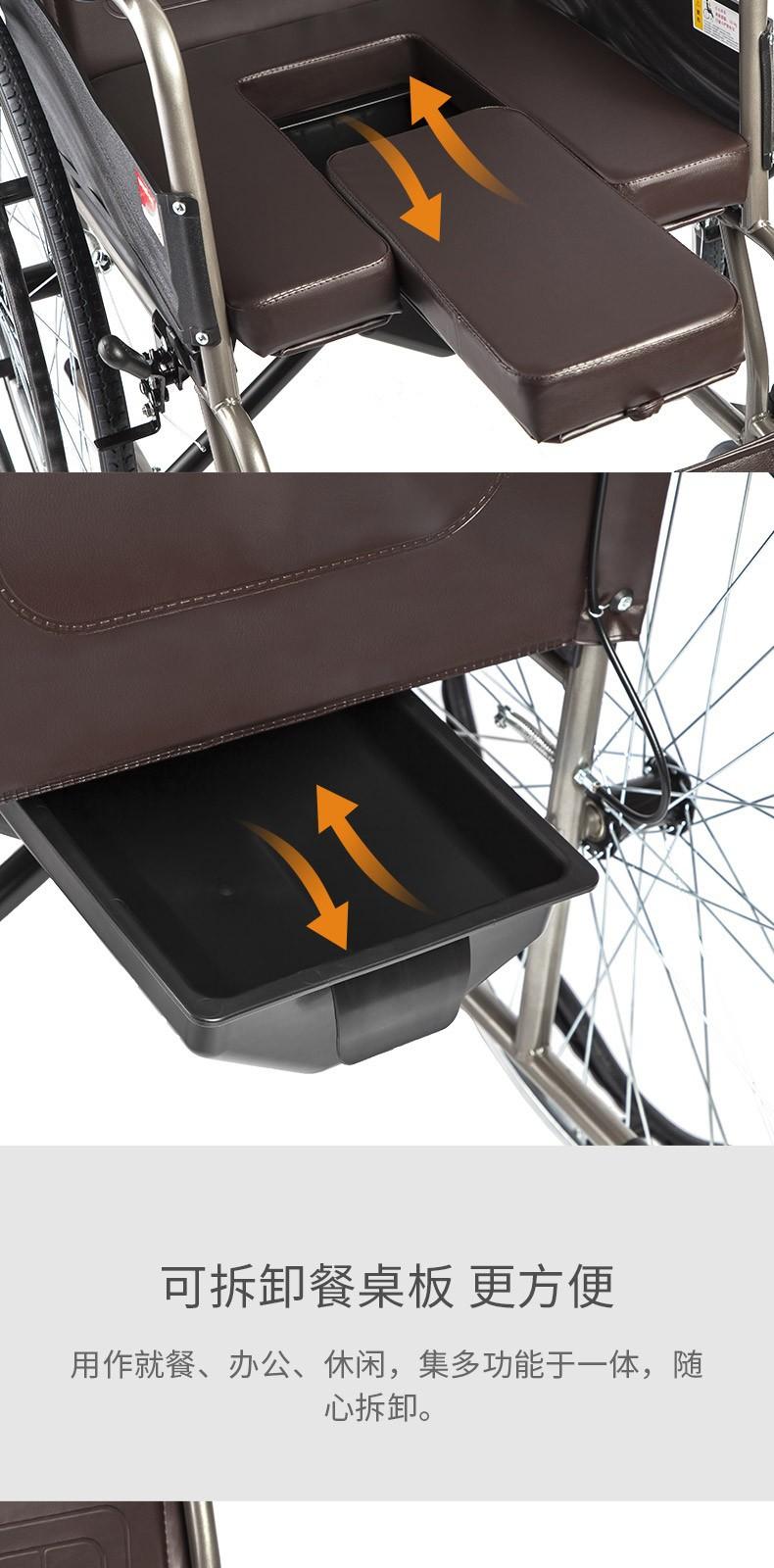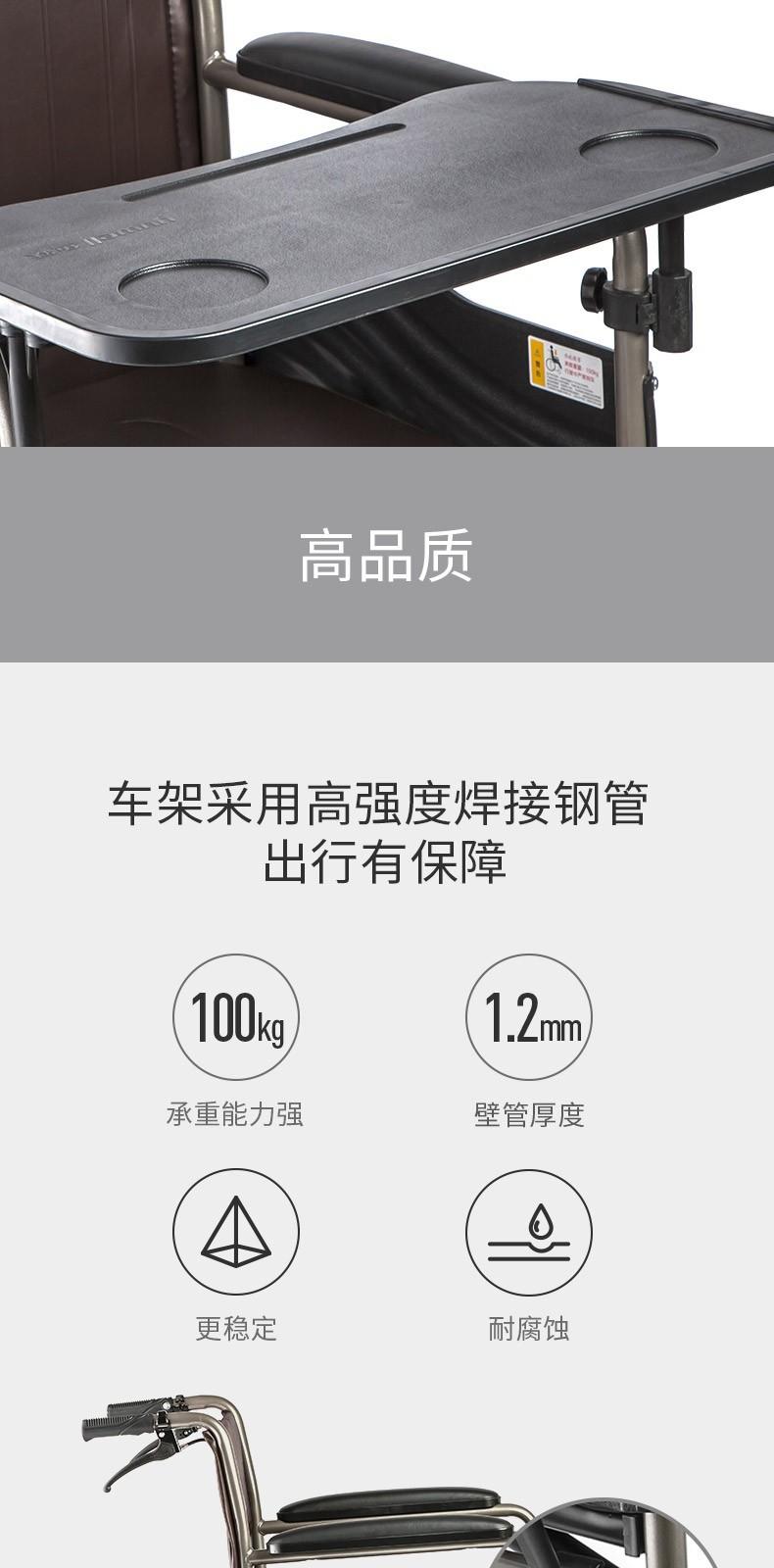 Silla de ruedas para personas mayores Yuyue H058B con mesa de comedor, ligera, plegable, de acero inoxidable, con soporte de carga, portátil, para personas con discapacidad