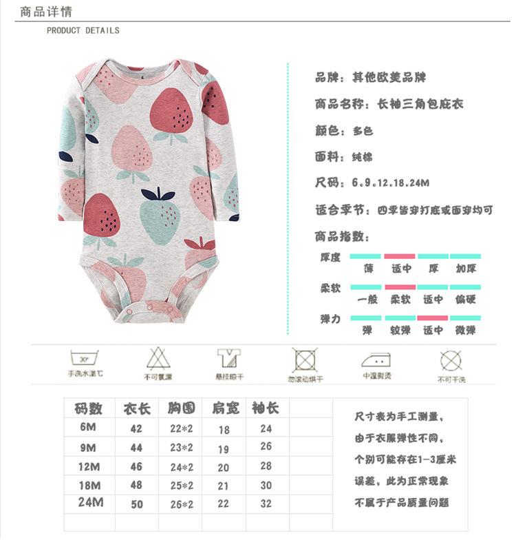 Otoño Nuevo Algodón Grado A Mameluco Mono para Bebé Manga Larga Dibujos Animados Onesie Exportación Estilo Europeo y Americano