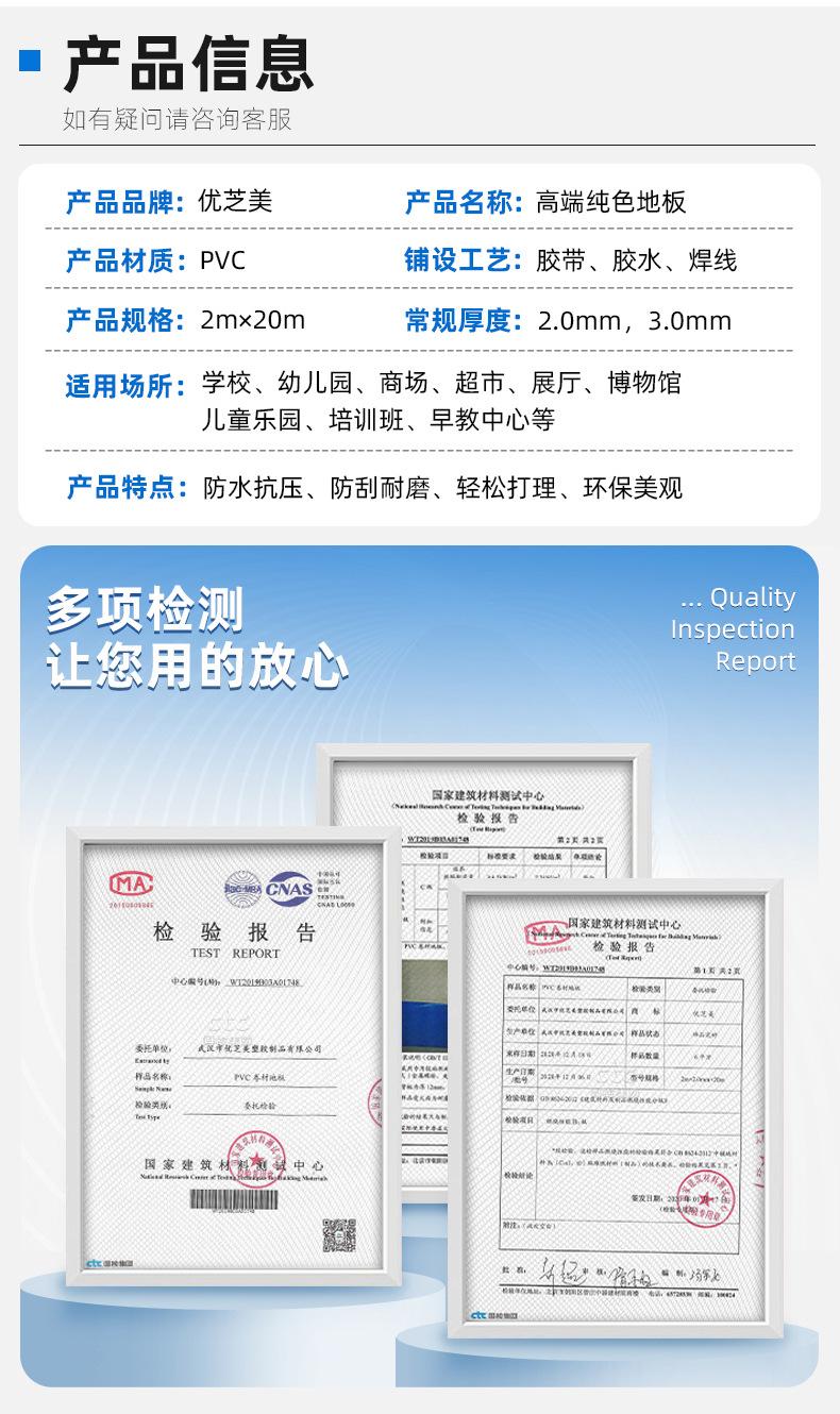 Mayorista de Fabricante Color Sólido Piso de Plástico PVC Resistente al Desgaste Antideslizante Pegamento para Piso Escolar Fondo Denso Multicapa Compuesto Piso de PVC