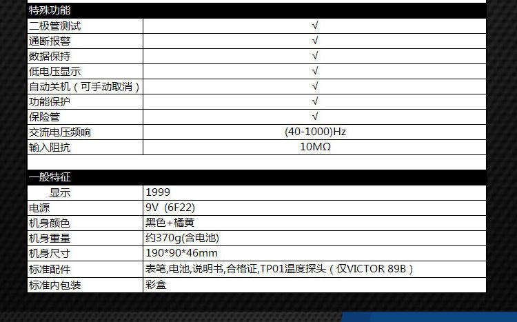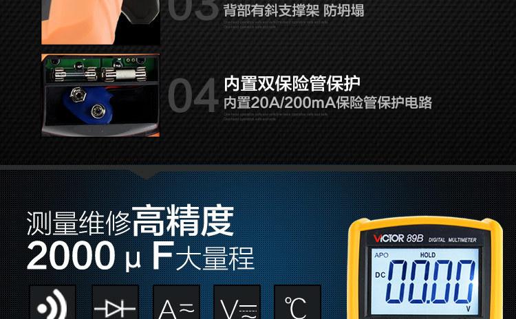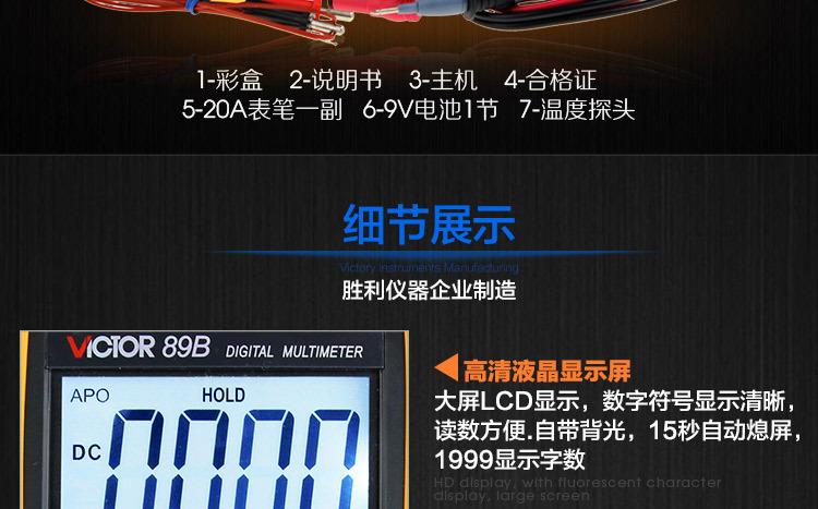 Multímetro digital VICTOR 89A/89B, instrumento de medición de mantenimiento inteligente, anti-quemaduras y de alta precisión.