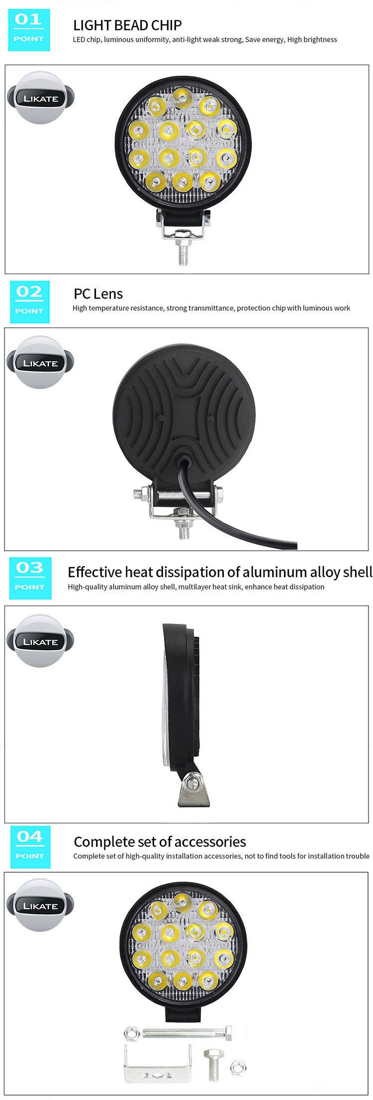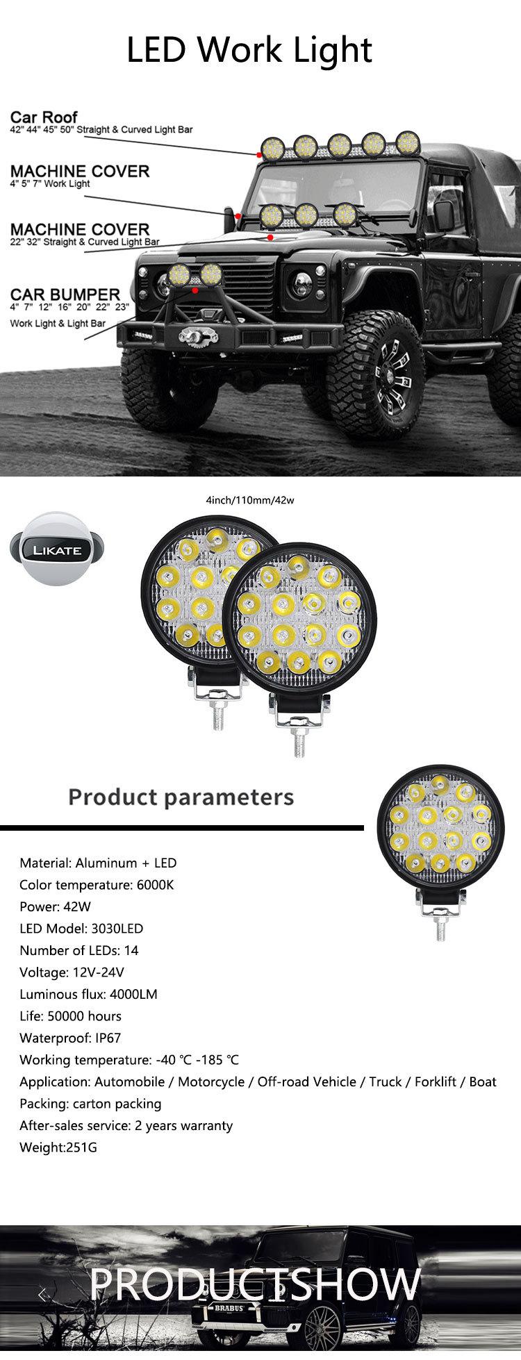 Compra Luz de trabajo redonda de 4 pulgadas, 14 LED, 42 W, para vehículos todoterreno, iluminación superior de faros delanteros de coche, luz de inspección, foco al por mayor en Joom.pro