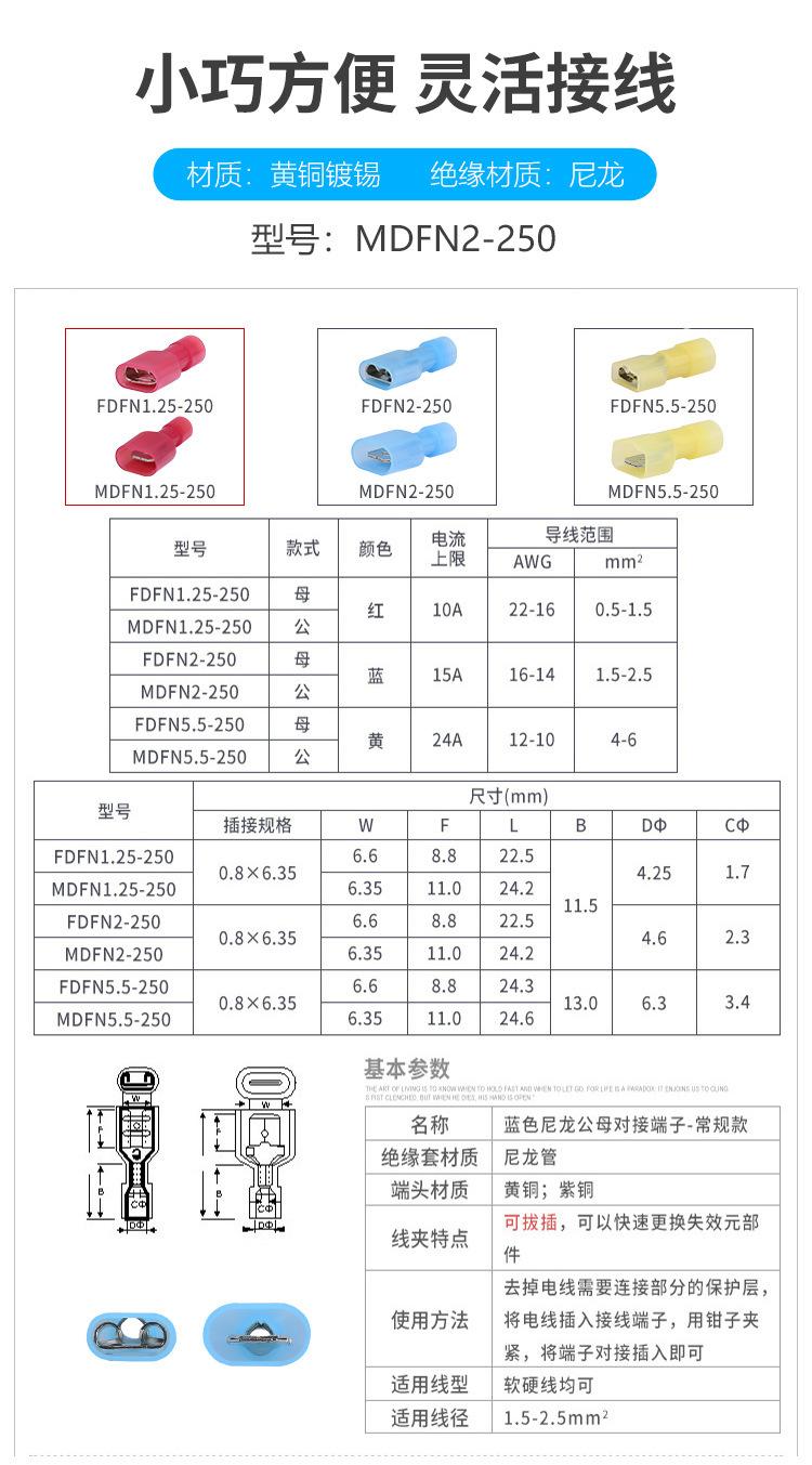 Compra Terminal de resorte de enchufe de nailon prensado en frío FDFN2-250, macho y hembra, aislado, retardante de llama, resistente a altas temperaturas, 6.3 al por mayor en Joom.pro