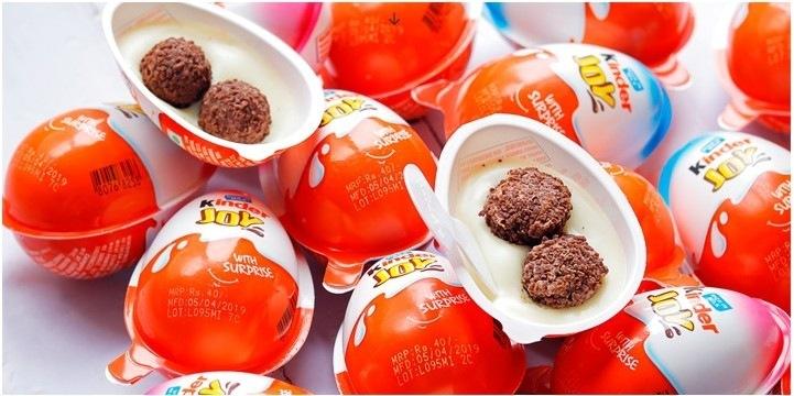 Un dulce para niños en forma de huevo, hecho de chocolate y relleno con un juguete.