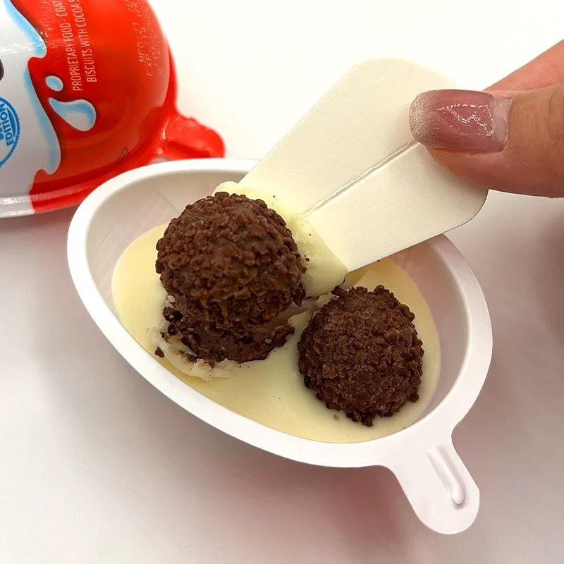 Presentación del bebé: ¡Hay 2 bolitas de oblea de cacao y pasta de cacao con leche en el interior! También hay una cucharita, que es higiénica y conveniente. También hay juguetes. El huevo divertido satisface tres deseos a la vez, delicioso + juguetes + sorpresas.