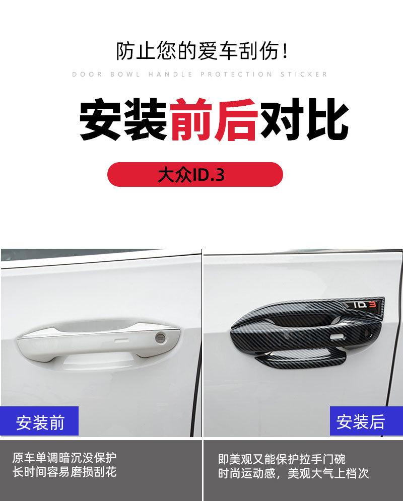 Adecuado para Volkswagen ID3 Adhesivo para Manija de Tazón de Puerta Modificado Manija de Puerta Cubierta Protectora Antiarañazos Accesorios de Decoración de Apariencia Suministros
