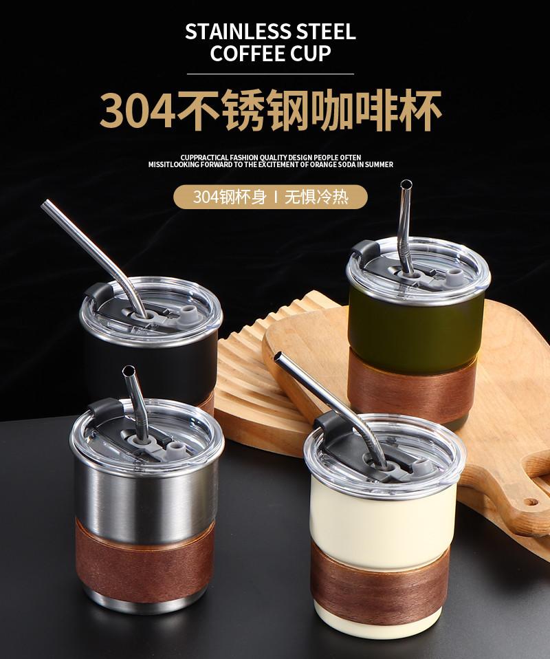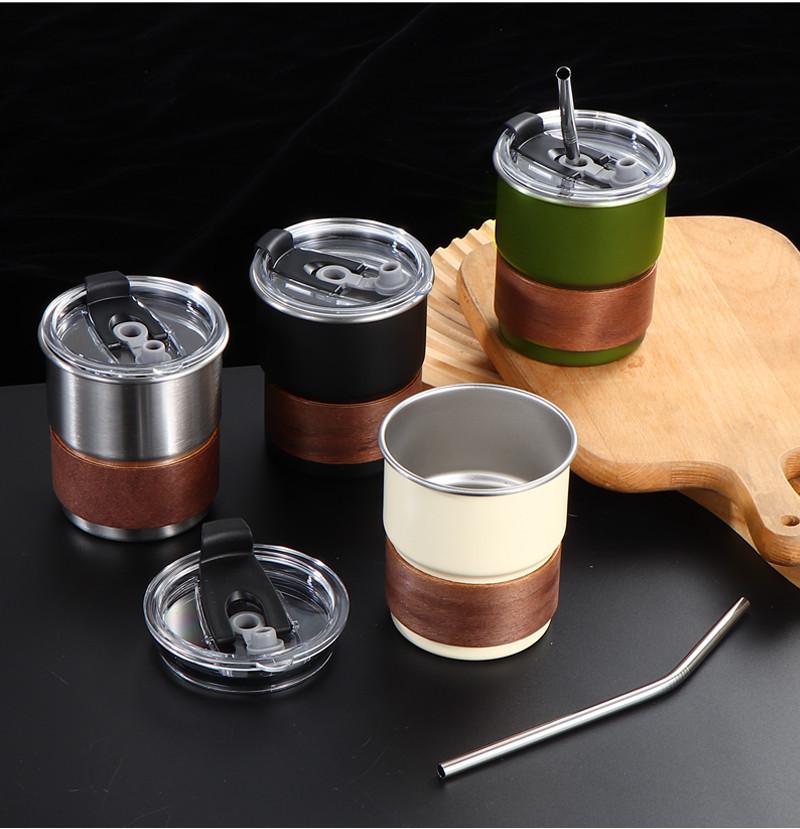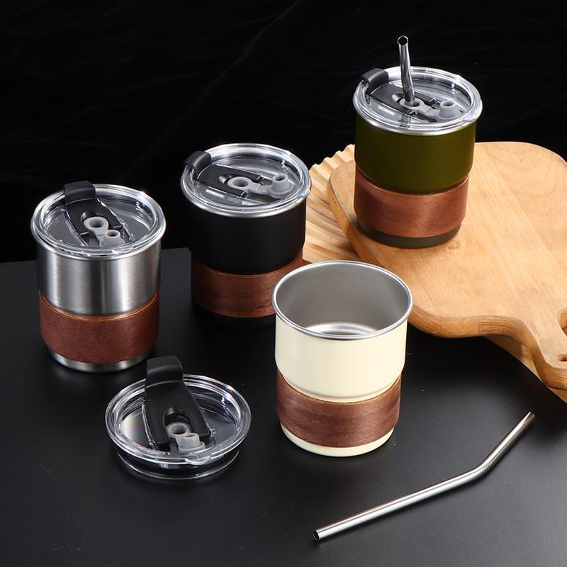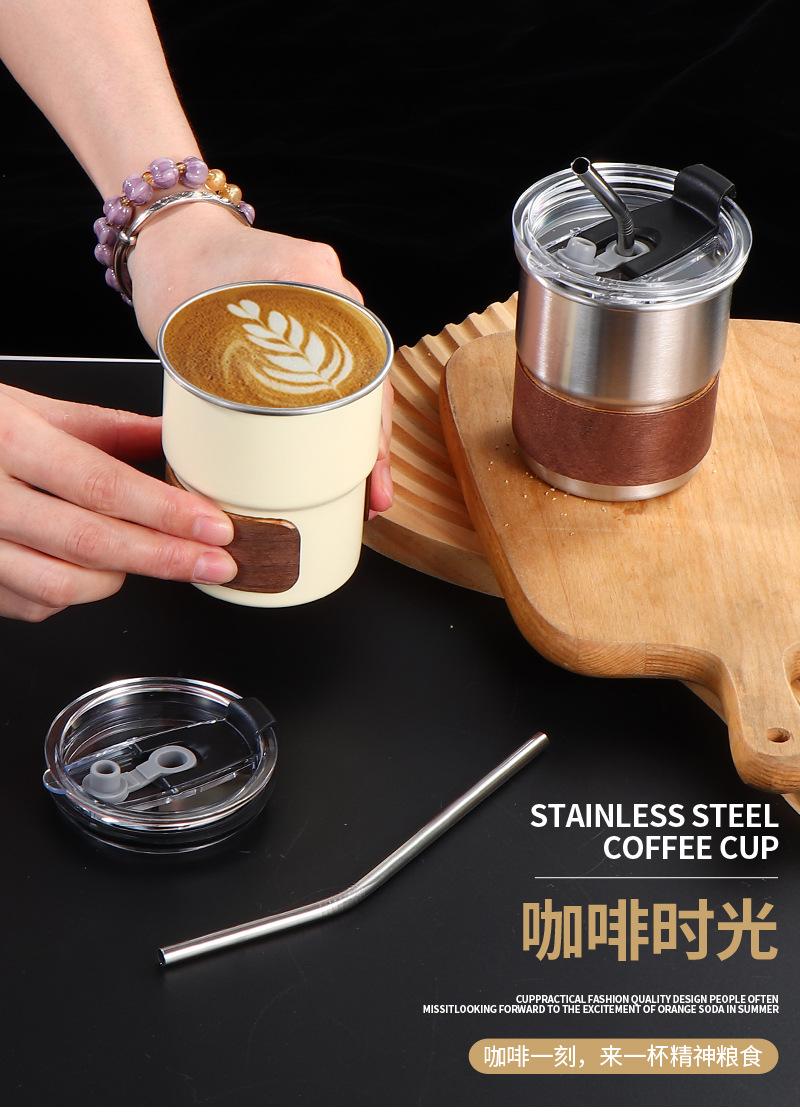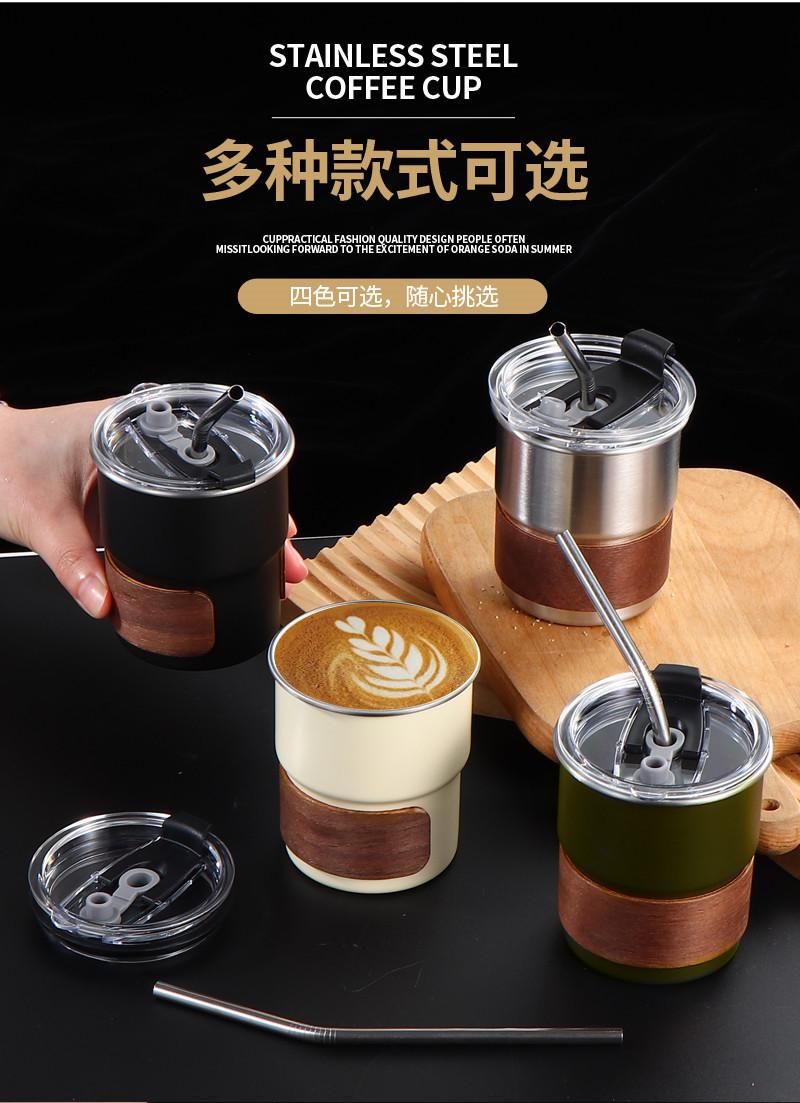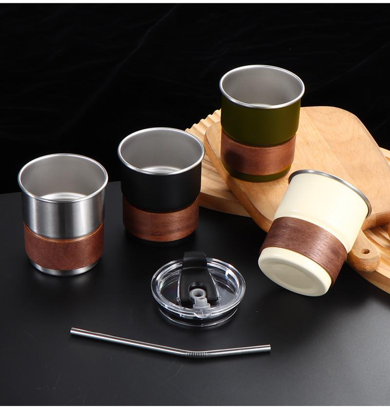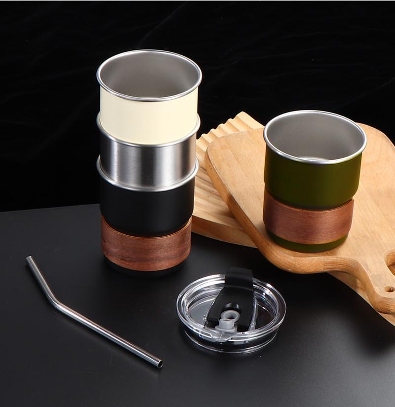 304 step cup silver, 304 step cup cream white, 304 step cup black, 304 step cup military green, Sealed lid, Wooden cup cover