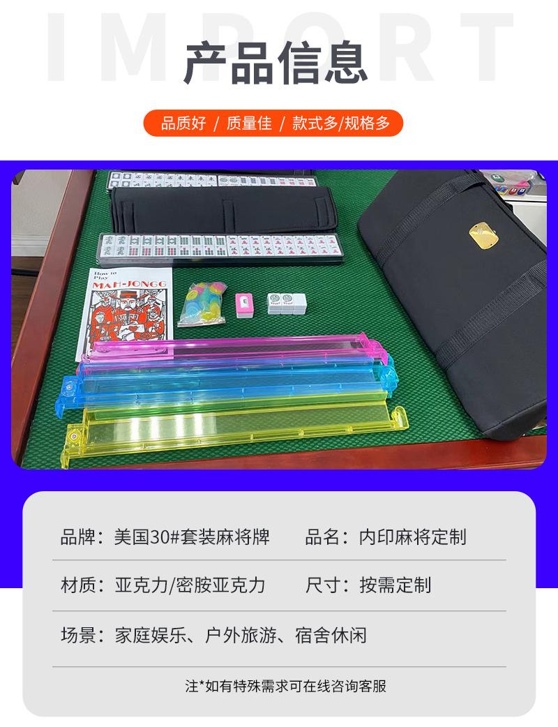 Juego de Mahjong americano acrílico de n.° 30 con logotipo para entretenimiento, frotamiento de manos y cartas de Mahjong